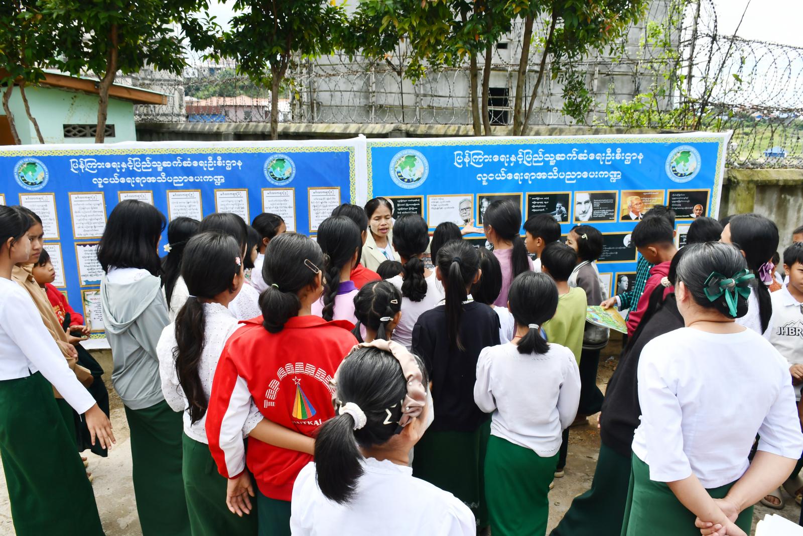 ယင်းနောက် ပြန်ကြားရေးနှင့်ပြည်သူ့ဆက်ဆံရေးဦးစီးဌာနက ခင်းကျင်းပြသထားသည့် လူငယ်ဆိုင်ရာ အသိပညာပေး နံရံကပ်စာစောင်များ၊ မူးယစ်ဆေးဝါး တိုက်ဖျက်ရေး အသိပညာပေးနံရံကပ်စာစောင်များ၊ သုတရသစာအုပ်စာစောင်များကို ဆရာ၊ ဆရာမများနှင့် ကျောင်းသား/ ကျောင်းသူများမှ စိတ်ပါဝင်စားစွာ လေ့လာကြည့်ရှု မှတ်သားကြကြောင်း သိရှိရပါသည်။