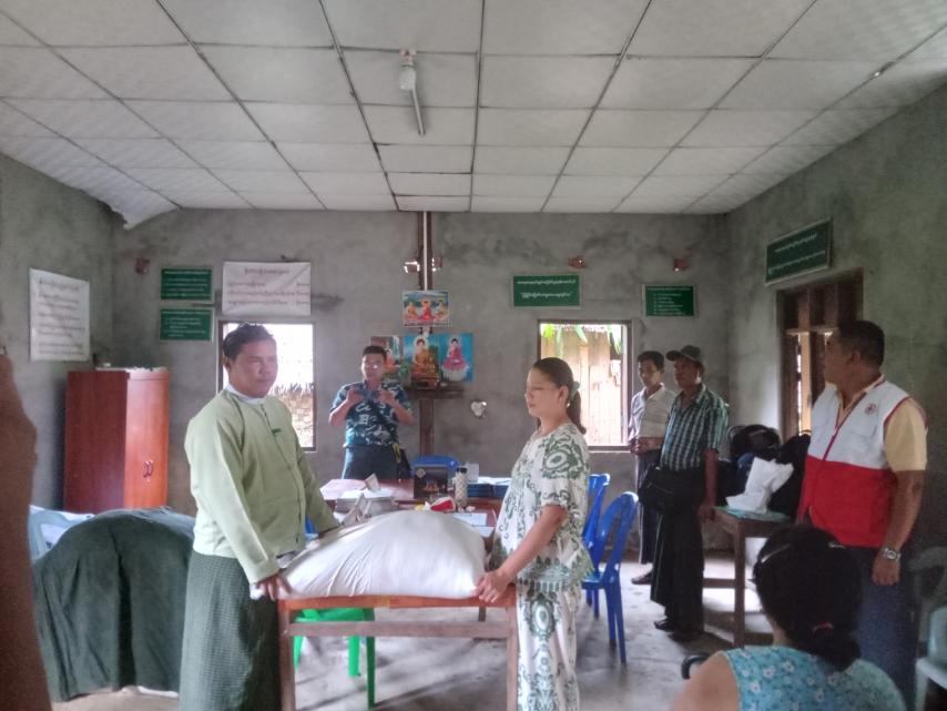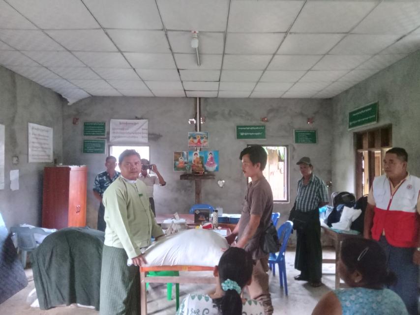 အခမ်းအနားတွင် မြို့အုပ်ချုပ်ရေးမှူး ဦးမြတ်ဟိန်းထွန်းက ယာယီနေရပ်စွန့်ခွာပြည်သူများအား မိမိတို့နေထိုင်နေသည့်အချိန်အခါတွင် အခက်အခဲများရှိပါက ဆွေးနွေးတင်ပြကြရန်ပြောကြားပြီး ဆန်အိတ်များပေးအပ်ခြင်းနှင့်ပတ်သက်၍ ရှင်းလင်းပြောကြားခဲ့သည်။ ဆက်လက်၍ မြို့အုပ်ချုပ်ရေးမှူး ဦးမြတ်ဟိန်းထွန်းနှင့် မြန်မာနိုင်ငံကြက်ခြေနီအသင်း၊ ငပုတောမြို့နယ် ကြက်ခြေနီအသင်းမှတာဝန်ရှိသူများက ယာယီနေရပ်စွန့်ခွာ အိမ်ထောင်စု(၅၁)စုအား စုစုပေါင်းဆန်အိတ်(၆၅)အိတ်အား လက်ဝယ်အရောက်ပေးအပ်ခဲ့ကြောင်း သိရသည်။
