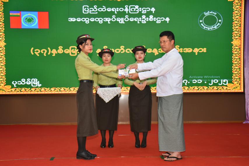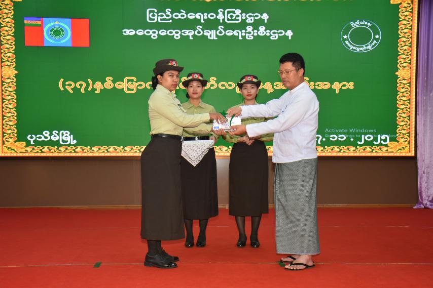 ထို့နောက် တိုင်းဒေသကြီးဝန်ကြီးချုပ်သည် (၃၇)နှစ်မြောက် အထွေထွေအုပ်ချုပ်ရေးဦးစီးဌာန၊ နှစ်ပတ်လည်နေ့အခမ်းအနားအတွက် ချီးမြှင့်ငွေများနှင့် သင်တန်းတွင် ထူးချွန်ဆုရရှိသူများအား ဆုများချီးမြှင့်ခဲ့ပြီးနောက် ပြည်ထဲရေးဝန်ကြီးဌာန၊ အထွေထွေအုပ်ချုပ်ရေးဦးစီးဌာန သမိုင်းကြောင်းဗီဒီယိုကလစ်ပြသမှုကို ကြည့်ရှုအားပေးခဲ့သည်။ ဆက်လက်၍ တိုင်းဒေသကြီး အစိုးရအဖွဲ့ဝင်ဝန်ကြီးများနှင့် တာဝန်ရှိသူများက သင်တန်းတွင် ထူးချွန်ဆုရရှိခဲ့သည့် အရာထမ်း၊ အမှုထမ်းများနှင့် တစ်နှစ်ပတ်လုံးခွင့်ယူခြင်းမရှိဘဲ လုပ်ငန်းတာဝန်များအား ကျေပွန်စွာထမ်းဆောင်သူများအား ဂုဏ်ပြုဆုချီးမြှင့်ငွေများ၊ ဆုတံဆိပ်များချီးမြှင့်ခဲ့ကြောင်း သိရသည်။