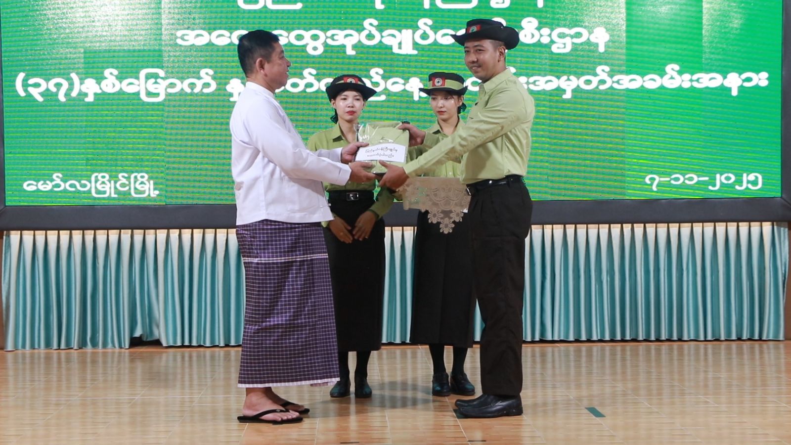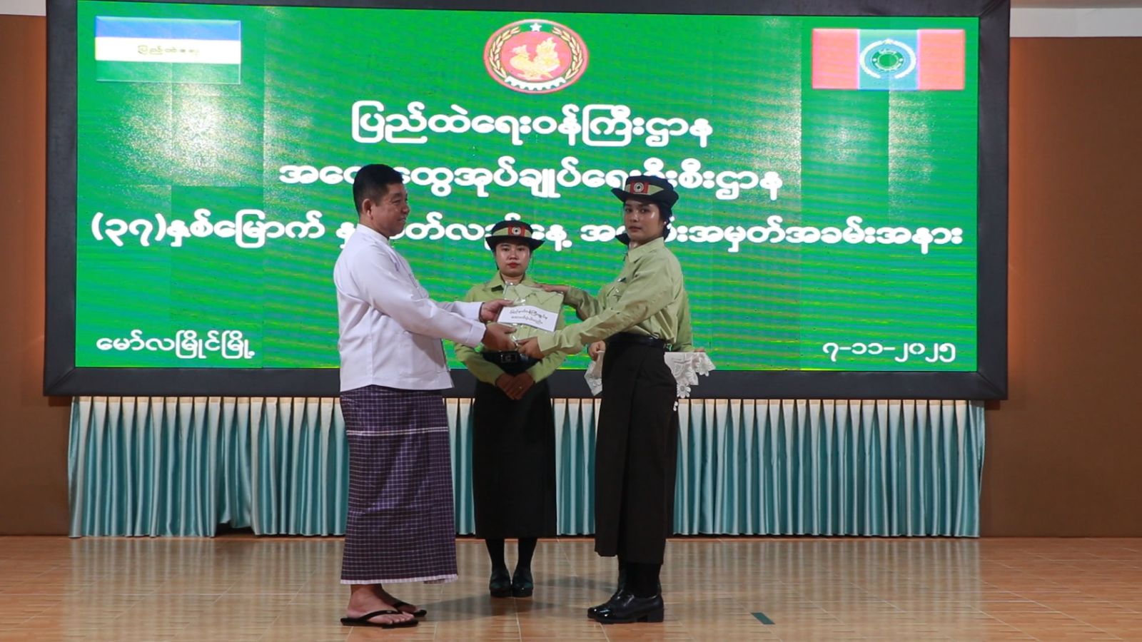ထို့နောက် ပြည်ထဲရေးဝန်ကြီးဌာန၊ အထွေထွေအုပ်ချုပ်ရေးဦးစီးဌာန(ရုံးချုပ်)မှ ပေးပို့လာသော အထွေထွေအုပ်ချုပ်ရေးဦးစီးဌာန သမိုင်းကြောင်းနှင့် လုပ်ငန်းစွမ်းဆောင်ချက်များ Video Clip အား ပြသခဲ့ပြီး ပြည်နယ်ဝန်ကြီးချုပ်က ချီးမြှင့်ငွေကျပ်သိန်း (၂၀၀)အား ပေးအပ်ခဲ့ရာ ပြည်နယ်အုပ်ချုပ်ရေးမှူး ဦးဉာဏ်လင်းထွေးမှ လက်ခံရယူခဲ့ပြီး အမျိုးသား/ အမျိုးသမီး ဝန်ထမ်းများအတွက် တူညီဝတ်စုံများ ပေးအပ်ခဲ့ကြသည်။