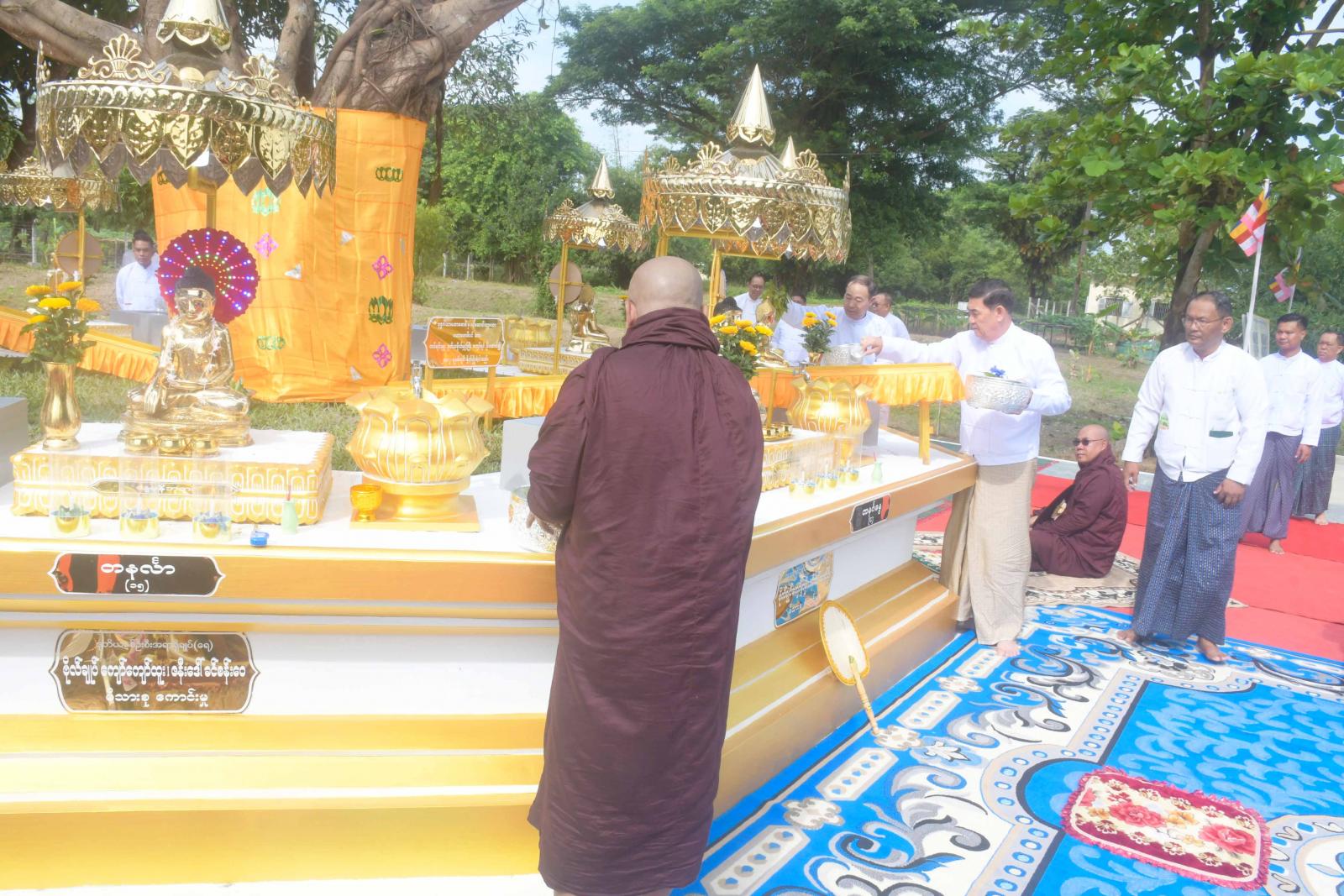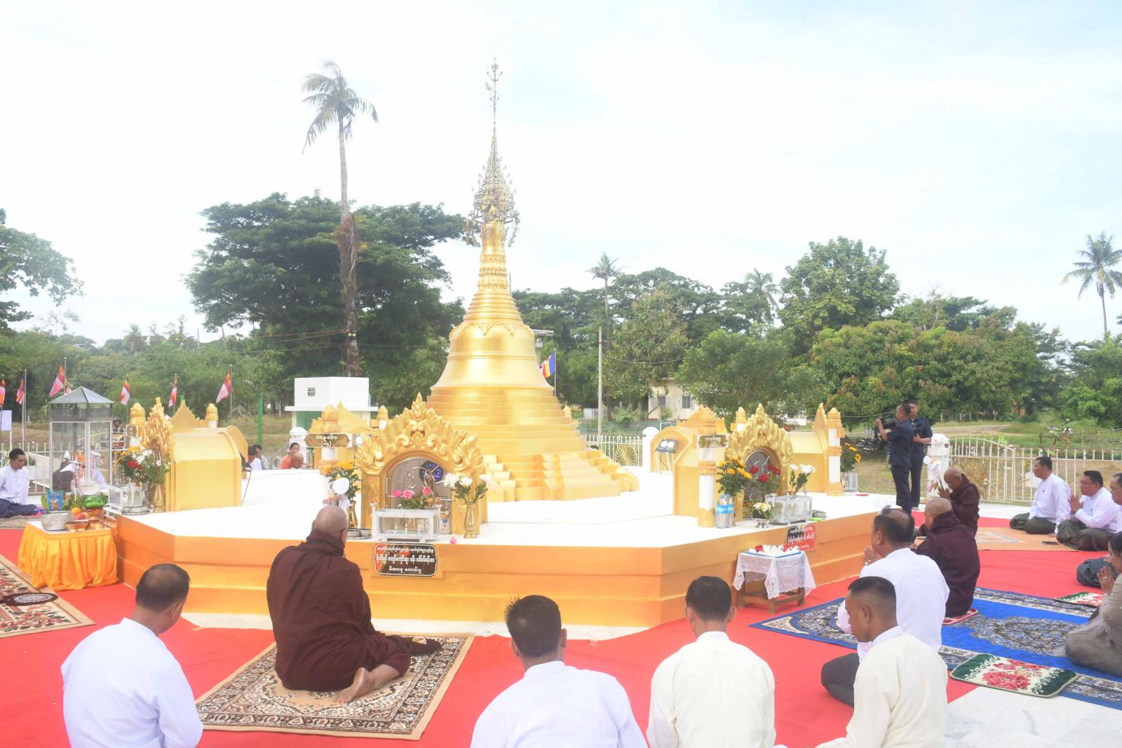 ရန်အောင်ဇေယျသုခမင်္ဂလာစေတီတော်နှင့် မဟာဗောဓိပင် ဂြိုဟ်ရှစ်ခွင်ဗုဒ္ဓါဘိသေက ဘုရားအနေကဇာတင် အလှူတော်မင်္ဂလာပွဲကို ယနေ့နံနက်ပိုင်းက စစ်တွေတပ်နယ်၌ ကျင်းပရာ ရခိုင်ပြည်နယ်ဝန်ကြီးချုပ် ဦးထိန်လင်းနှင့်ဇနီး၊ အနောက်ပိုင်းတိုင်းစစ်ဌာနချုပ်၊ တိုင်းမှူး၊ ဗိုလ်ချုပ် ကျော်စွာဦးနှင့်ဇနီး၊ ပြည်နယ် တရားလွှတ်တော်တရားသူကြီးချုပ်၊ ပြည်နယ်အစိုးရအဖွဲ့ဝင်များ၊ စစ်တွေတပ်နယ်မှတပ်မတော်အရာရှိကြီးများနှင့် ဇနီးများ၊ တပ်ဖွဲ့ဝင်များနှင့်မိသားစုဝင်များ တက်ရောက်ကြသည်။