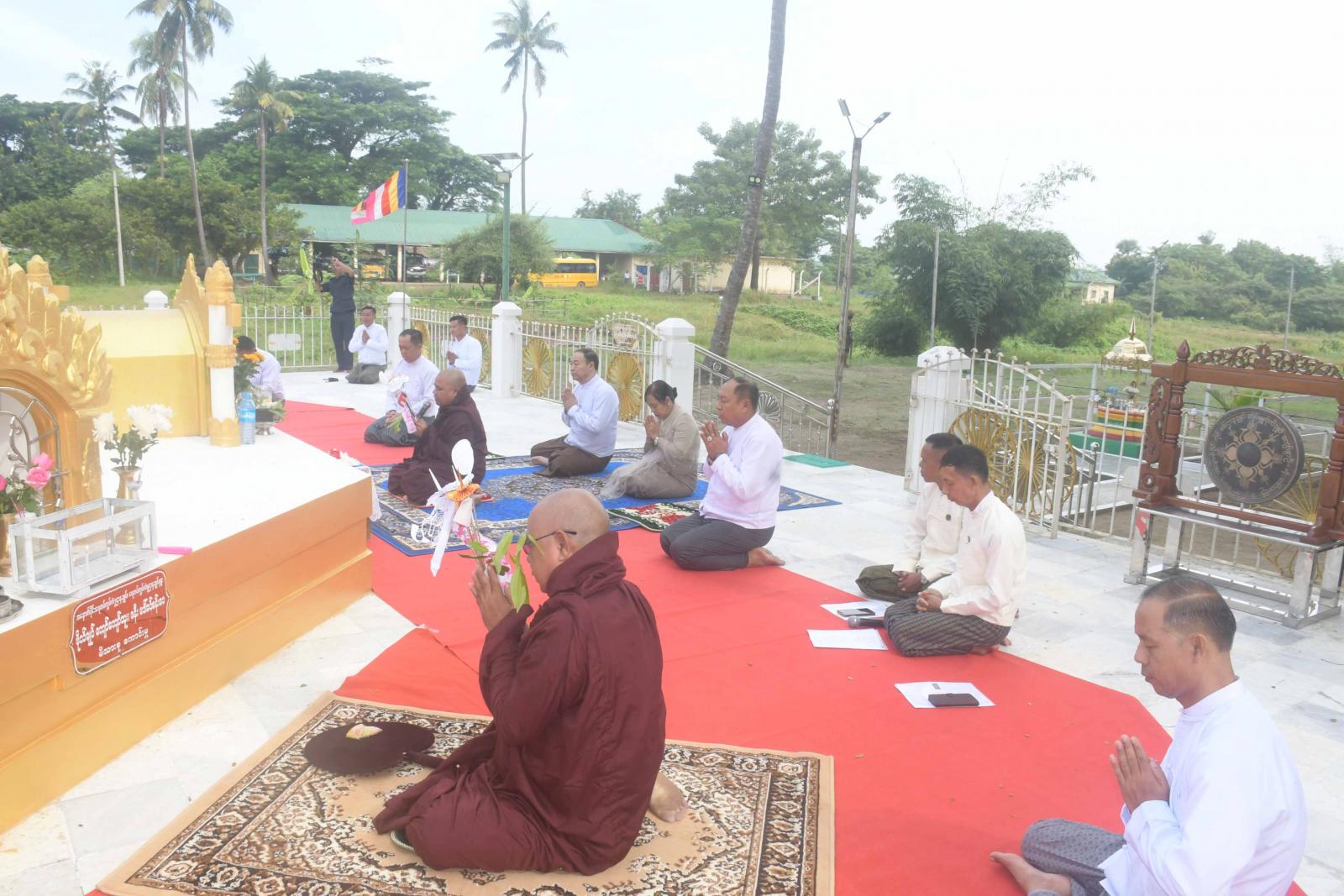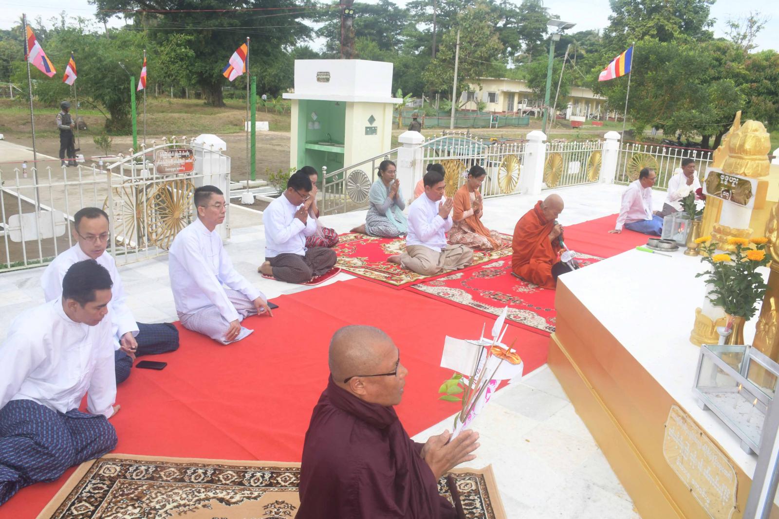 ထို့နောက် စစ်တွေမြို့ ရွှေစေတီကျောင်းတိုက် ဆရာတော် အဂ္ဂမဟာသဒ္ဓမ္မ ဇောတိကဓဇ၊ အဂ္ဂမဟာမင်္ဂလဓမ္မဇောတိကဓဇ ဒေါက်တာ ဘဒ္ဒန္တအရိယဝံသထံမှ အနုမောဒနာတရားနာယူ၍ လှူဒါန်းမှုအစုစုတို့အတွက် ရေစက်သွန်းချအမျှပေးခဲ့ကြပြီး သံဃာတော်အရှင်သူမြတ်များအား နေ့ဆွမ်းဆက်ကပ်လှူဒါန်းခဲ့ကြကြောင်း သတင်းရရှိသည်။