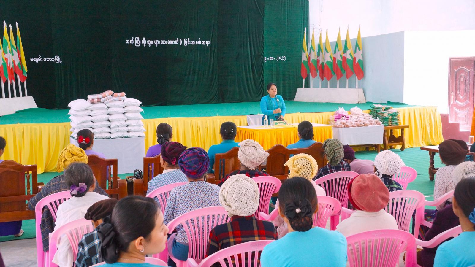 ထိုသို့တွေ့ဆုံစဉ် ကချင်ပြည်နယ်အမျိုးသမီးရေးရာအဖွဲ့ နာယက ဒေါ်လဖိုင်နန်ဆိုင်းက စကားပြောကြားပြီး ကချင်ပြည်နယ်အမျိုးသမီးရေးရာအဖွဲ့ နာယကနှင့်အဖွဲ့ဝင်များက မချမ်းဘောမြို့ပေါ် ရပ်ကွက်ရှိ သက်ကြီးဘိုးဘွား(၃၅)ဦးအား အခြေခံစားသောက်ကုန်များဖြစ်သည့် ဆန်၊ ဆား၊ ကွေကာ၊ ကြက်ဥ၊ ခေါက်ဆွဲနှင့် ချီးမြှင့်ငွေများကို သက်ကြီးဘိုးဘွာများလက်ဝယ်အရောက်ပေးအပ်လှူဒါန်းသည်။