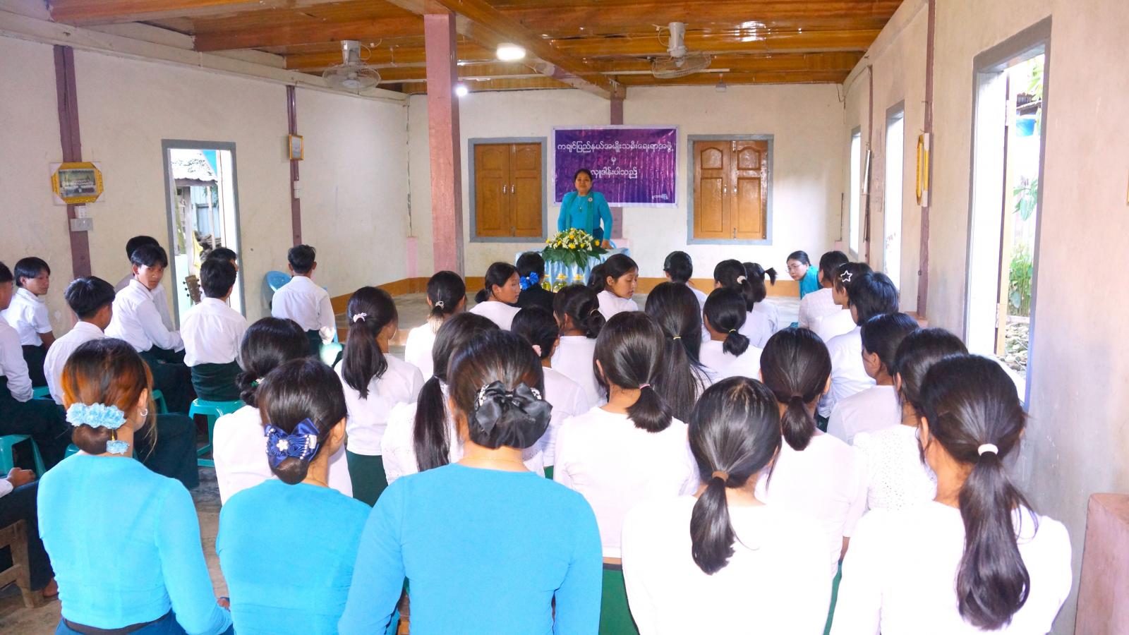 ထို့နောက် ပြည်နယ်အမျိုးသမီးရေးရာအဖွဲ့ နာယကနှင့်အဖွဲ့ဝင်များသည် ညနေပိုင်းတွင် ပူတာအိုမြို့ ဟိုခိုရပ်ကွက်ရှိ ပရဟိတကျောင်း ကျောင်းသား/သူများနှင့်တွေ့ဆုံအားပေးစကားပြောကြားပြီး ပြည်နယ်အမျိုးသမီးရေးရာအဖွဲ့နာယကနှင့် အဖွဲ့ဝင်များက ဆရာ/မများနှင့် ကျောင်းသားကျောင်းသူစုစုပေါင်း (၈၀) ဦး အတွက် အခြေခံစားသောက်ကုန်များဖြစ်သည့် ဆန်၊ ဆီ၊ ဗလာစာအုပ်နှင့်ချီးမြှင့်ငွေများကိုပေးအပ်လှူဒါန်း သည်။