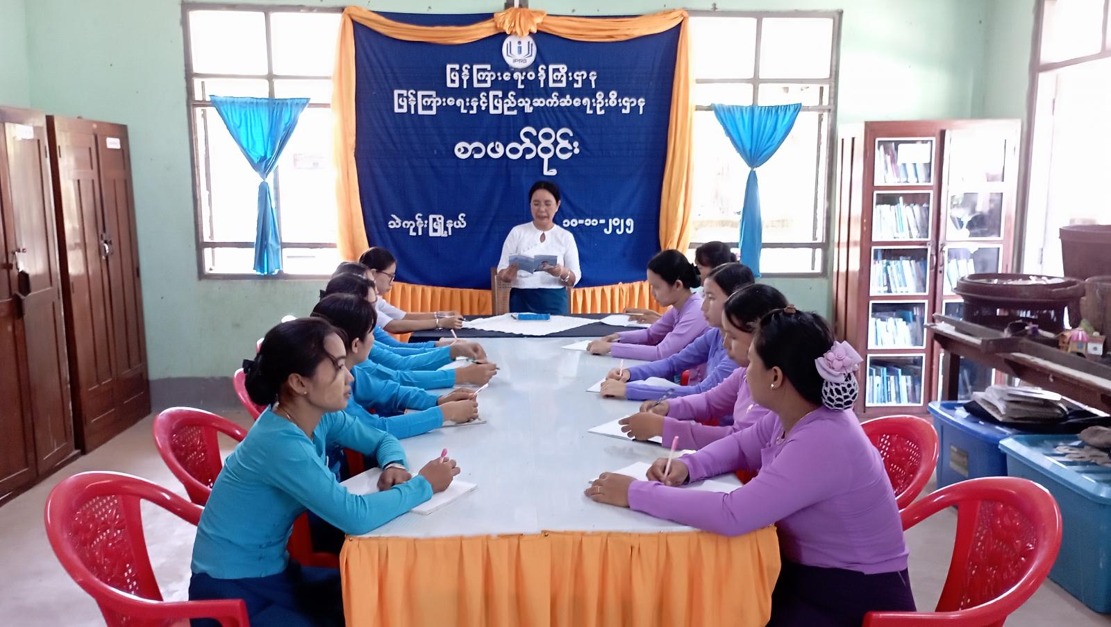 ရှေးဦးစွာ ပြန်ကြားရေးနှင့်ပြည်သူ့ဆက်ဆံရေးဦးစီးဌာနမှ ဦးစီးအရာရှိ ဒေါ်ဝင့်နန္ဒာဌေးက မြို့နယ်အတွင်းရှိ စာပေဝါသနာရှင်များအနေဖြင့် စာဖတ်သည့် အလေ့အကျင့်ကောင်းများ ရရှိလာပြီး စာပေများကို လေ့လာဖတ်ရှုခြင်းဖြင့် အသိပညာ ဗဟုသုများ တိုးပွား၍ စာပေချစ်သူများ တစ်ဦးနှင့်တစ်ဦး ပြန်လည်မျှဝေခြင်းဖြင့် ရင်းနှီးမှု ရရှိလာစေရန် ရည်ရွယ်၍ စာဖတ်ဝိုင်းကျင်းပ ပြုလုပ်ရခြင်းဖြစ်ကြောင်း ရှင်းလင်းပြောကြားခဲ့သည်။