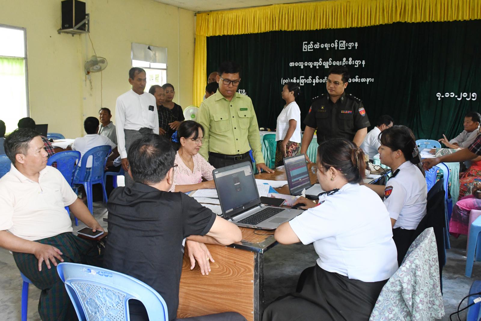 မဲဆန္ဒရှင်စာရင်းများမှန်ကန်စေရေး ပူးပေါင်းဆောင်ရွက်ရာတွင် သတ်မှတ်ဥပဒေနှင့်ညီညွတ်မှုမရှိသူများနှင့် သေဆုံးသူများ ပါဝင်မှုမရှိစေရေး၊ ဥပဒေနှင့်ညီညွတ်သည့် မဲဆန္ဒရှင်များကျန်ရှိမှု မရှိစေရေး၊ သတ်မှတ်ရက်အတွင်း ပြီးစီးနိုင်ရေးတို့ကို မြို့နယ်ရွေးကောက်ပွဲကော်မရှင်အဖွဲ့ခွဲရုံးဝန်ထမ်းများ၊ လူဝင်မှုကြီးကြပ်ရေးနှင့်ပြည်သူ့အင်အားဝန်ကြီးဌာန၊ မြို့နယ်ဦးစီးမှူးရုံးမှဝန်ထမ်းများ၊ သက်ဆိုင်ရာ ရပ်ကွက်နှင့် ကျေးရွာအုပ်စုများမှ အုပ်ချုပ်ရေးမှူးများနှင့် စာရေးဝန်ထမ်းများ၊ နိုင်ငံရေးပါတီဝင်များ ပူးပေါင်းဆောင်ရွက်နေမှုကို မြို့နယ်အုပ်ချုပ်ရေးမှူး ဦးအာကာစိုးနှင့် ကော်မရှင်အဖွဲ့ခွဲဝင်များက ကြည့်ရှုအားပေးခဲ့ကြောင်း သိရသည်။