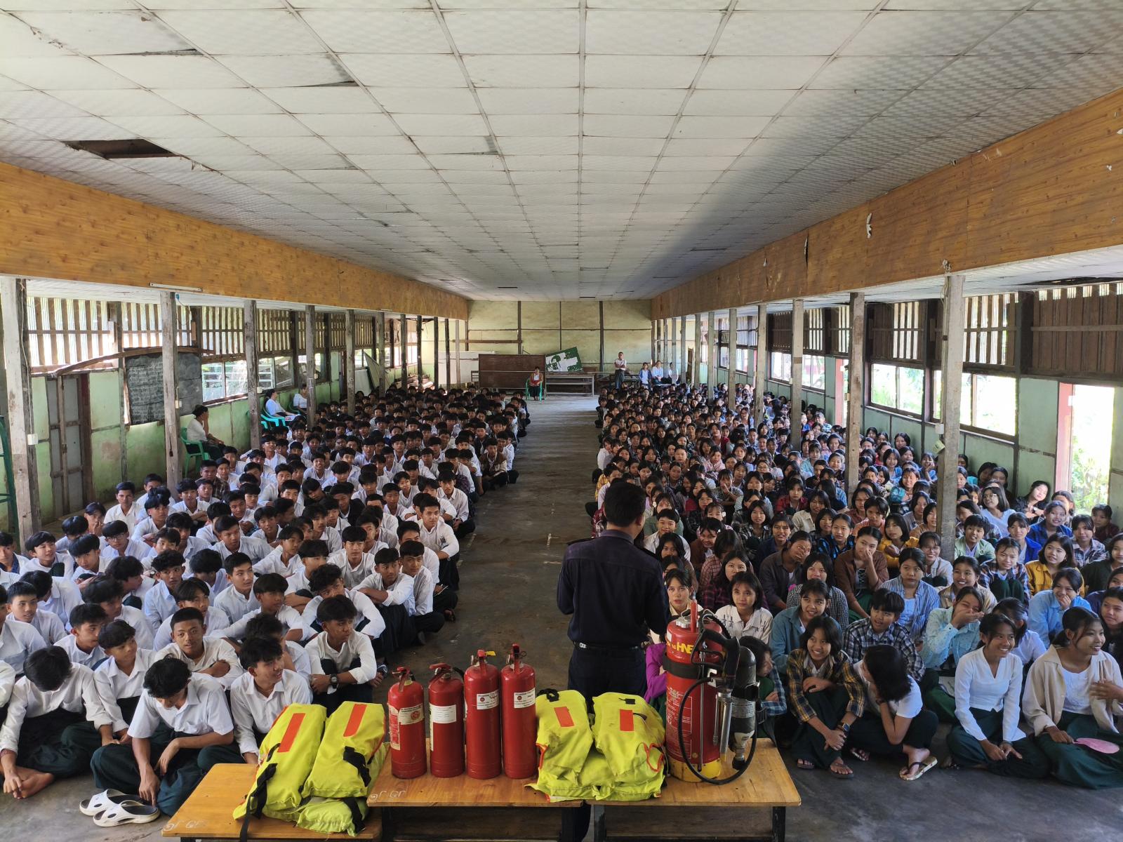 အဆိုပါ ဟောပြောပွဲအခမ်းအနားတွင် တောင်တွင်းကြီးမြို့နယ် မီးသတ်ဦးစီးဌာနမှ မီးသတ်ဦးစီးမှူး ဦးစောမောင်က မီးဘေးလုံခြုံကာကွယ်ရေး အသိပညာပေးဆွေးနွေးရခြင်း ရည်ရွယ်ချက်များ၊ မီးလောင်မှုအခြေခံသဘောတရားများ၊ မီးငြှိမ်းသတ်ခြင်းစနစ်များ၊ မီးအတန်းအစားခွဲခြားခြင်းများ၊ လျှပ်စစ်မီးလောင်မှုဖြစ်စေသည့် အဓိကအကြောင်းအရင်းများ၊ လျှပ်စစ်ဝါယာလျှော့မဖြစ်အောင် ကာကွယ်ရမည့် နည်းလမ်းများ၊ မီးကိုမပေါ့ဆကြရန်နှင့် မီးလောင်ပါက ပစ္စည်းဆုံးရှုံးမှုသာမက အသက်အိုးအိမ်များပါ ပျက်စီးဆုံးရှုံးတတ်ကြောင်းကို ရှင်းလင်းဟောပြောခဲ့ပြီး မီးသတ်ဦးစီးဌာန၏ သတ်မှတ်ထားသည့် ဝတ်စုံအမျိုးအစား(၄)မျိုးအကြောင်းနှင့် မီးဘေးအန္တရာယ် ဖြစ်ပေါ်လာပါက ကျောင်းသား၊ကျောင်းသူများ စိုးရိမ်ထိတ်လန့်မှုကင်းစွာ ကြိုတင်မီးငြှိမ်းသတ်နိုင်မည့် နည်းလမ်းများ၊ မီးသတ်ဆေးဘူး အသုံးပြုမှု အခြေခံနည်းလမ်းများအား လက်တွေ့သရုပ်ပြခဲ့ကြကြောင်း သိရသည်။