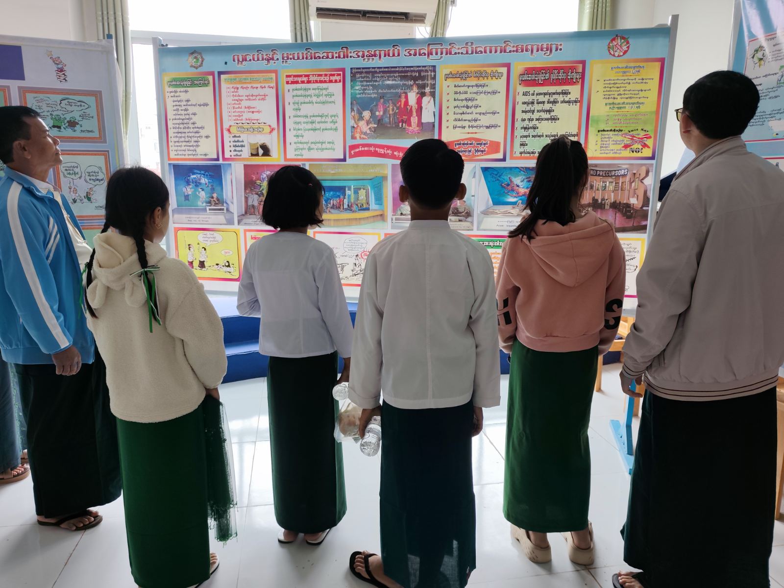 ထို့နောက် စာဖတ်ရှိန်မြှင့်တင်ရေး စာအုပ်စာစောင်ပြပွဲ၊ လူကုန်ကူးမှုတားဆီးကာကွယ်ရေး၊ မူးယစ်ဆေးဝါးအန္တရာယ်တားဆီးကာကွယ်ရေး၊ သဘာဝဘေးအန္တရာယ် ကြိုတင်ကာကွယ်ရေးနှင့် လူငယ်ရေးရာအသိပညာပေးစသည့် အသိပညာပေးနံရံကပ်စာစောင်ဓာတ်ပုံပြပွဲအား ခင်းကျင်းပြသခဲ့ရာ တက်ရောက်လာသည့် ဆရာ၊ ဆရာမများ၊ ကျောင်းသား၊ ကျောင်းသူများနှင့် ကျောင်းသားမိဘများက စိတ်ပါဝင်စားစွာ လေ့လာကြည့်ရှု့ခဲ့သည်။