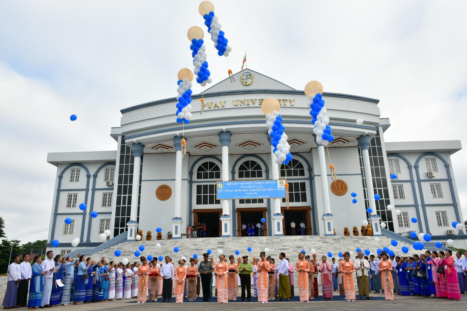 ရှေးဦးစွာ ယင်းတက္ကသိုလ်ဘက်စုံသုံးခန်းမရှေ့၌ ပြည်ခရိုင်စီမံခန့်ခွဲရေးနှင့်အုပ်ချုပ်ရေးကော်မတီဥက္ကဋ္ဌဦးသိန်းအောင်၊ ပြည်တက္ကသိုလ်ပါမောက္ခချုပ် ဒေါက်တာခင်မောင်ဇော်နှင့် တာဝန်ရှိသူများက အခမ်းအနားကို ဖဲကြိုးဖြတ်ဖွင့်လှစ်ပေးပြီး ပြခန်းများကို လှည့်လည်ကြည့်ရှုအားပေးကြသည်။