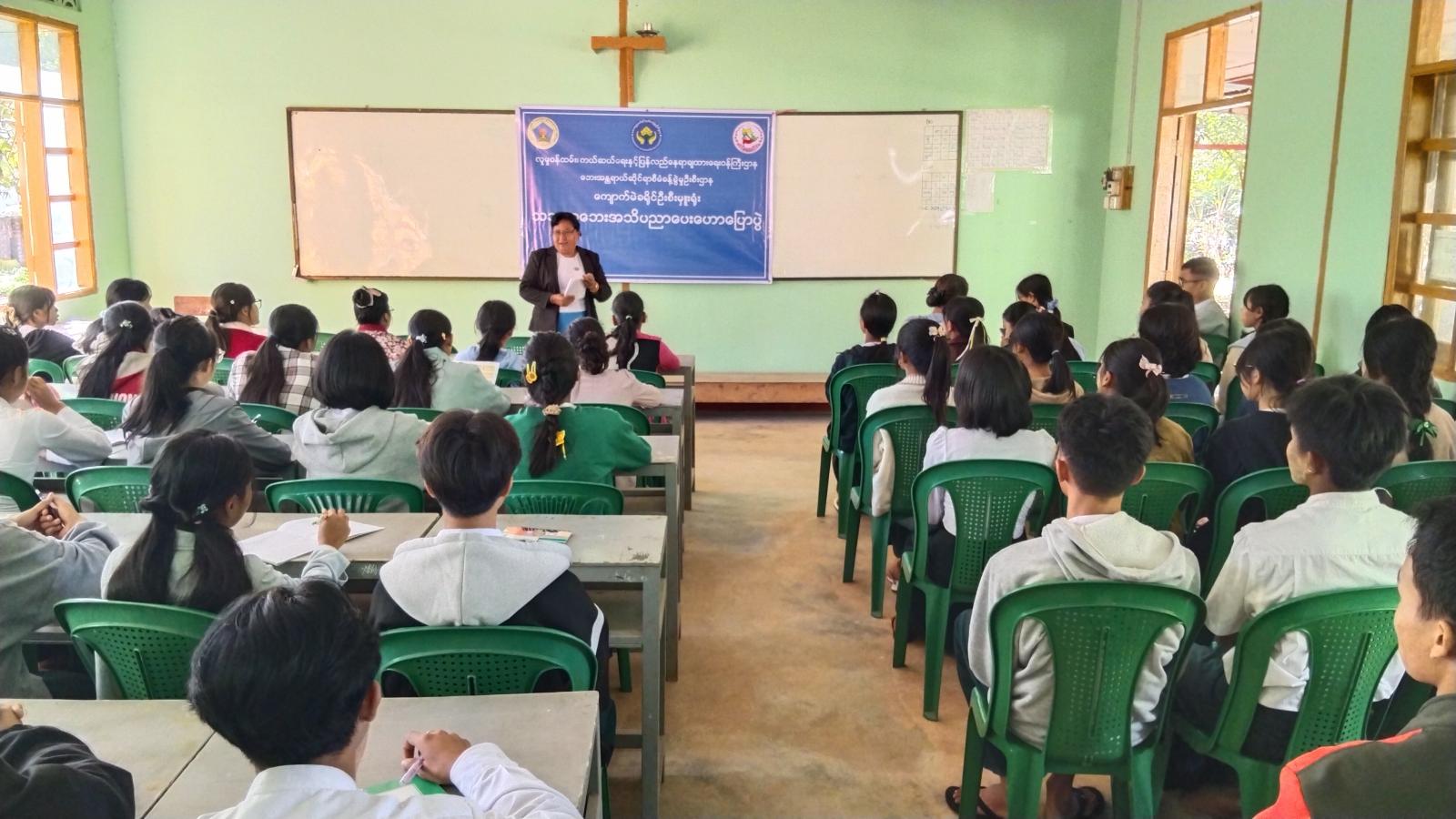 ရှမ်းပြည်နယ်မြောက်ပိုင်း၊ ကျောက်မဲမြို့ပေါ်ရှိ အမှတ် (၃) နှင့် အမှတ် (၄) အခြေခံပညာအထက်တန်းကျောင်းများသို့ ကျောက်မဲခရိုင်ဌာနဆိုင်ရာ ဝန်ထမ်းများက ယနေ့တွင်သွားရောက်၍ အသိပညာပေးဟောပြောပွဲများ ကွင်းဆင်းဆောင်ရွက်ခဲ့ကြောင်း သိရသည်။