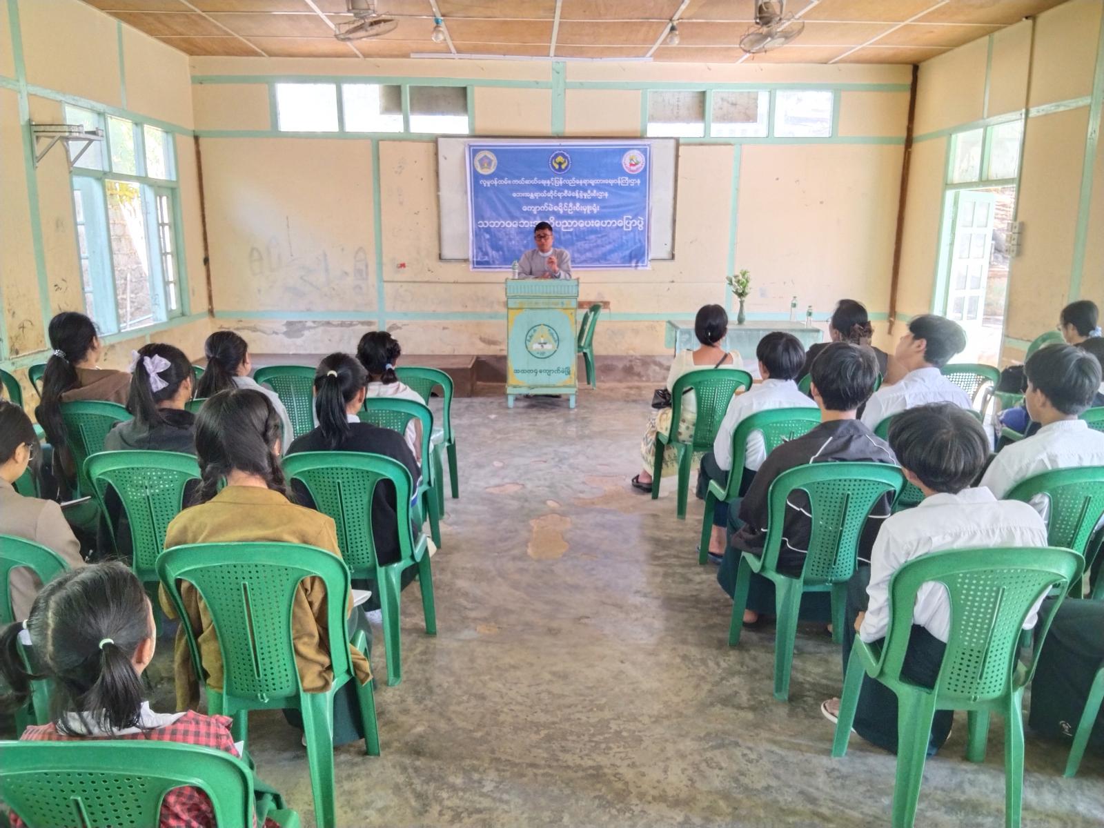 အဆိုပါဟောပြောပွဲတွင် လူမှုဝန်ထမ်းဦးစီးဌာနမှ ခရိုင်ဦးစီးမှူး ဒေါ်စန်းစန်းရီက ကလေးသူငယ်ဥပဒေပါ ကလေးသူငယ် အခွင့်အရေးဆိုင်ရာများ၊ ဘေးအန္တရာယ်ဆိုင်ရာ စီမံခန့်ခွဲရေး ဦးစီးဌာနမှ ဦးစီးမှူး ဒေါ်မူမူသိန်းက သဘာဘေးအန္တရာယ်အကြောင်းများနှင့် ဆောင်ရန် ရှောင်ရန်များ၊ ပတ်ဝန်းကျင်ထိန်းသိန်းရေးဦးစီးဌာနမှ ခရိုင်ဦးစီးမှူး ဦးစိန်မောင်ဌေးက ရာသီဥတုပြောင်းလဲခြင်းအကြောင်းသိကောင်းစာရာများနှင့် ပြန်ကြားရေးနှင့်ပြည်သူ့ဆက်ဆံရေးဦးစီးဌာနမှ ဦးစီးအရာရှိ ဦးစိုင်းထွန်းသိန်းက လူငယ်ဘဝ တိုးတက်ဖို့ စာအုပ်စာပေ ဖတ်ကြစို့ ခေါင်းစဉ်ဖြင့် အသီးသီး အသိပညာပေး ဟောပြောခဲ့ကြသည်။