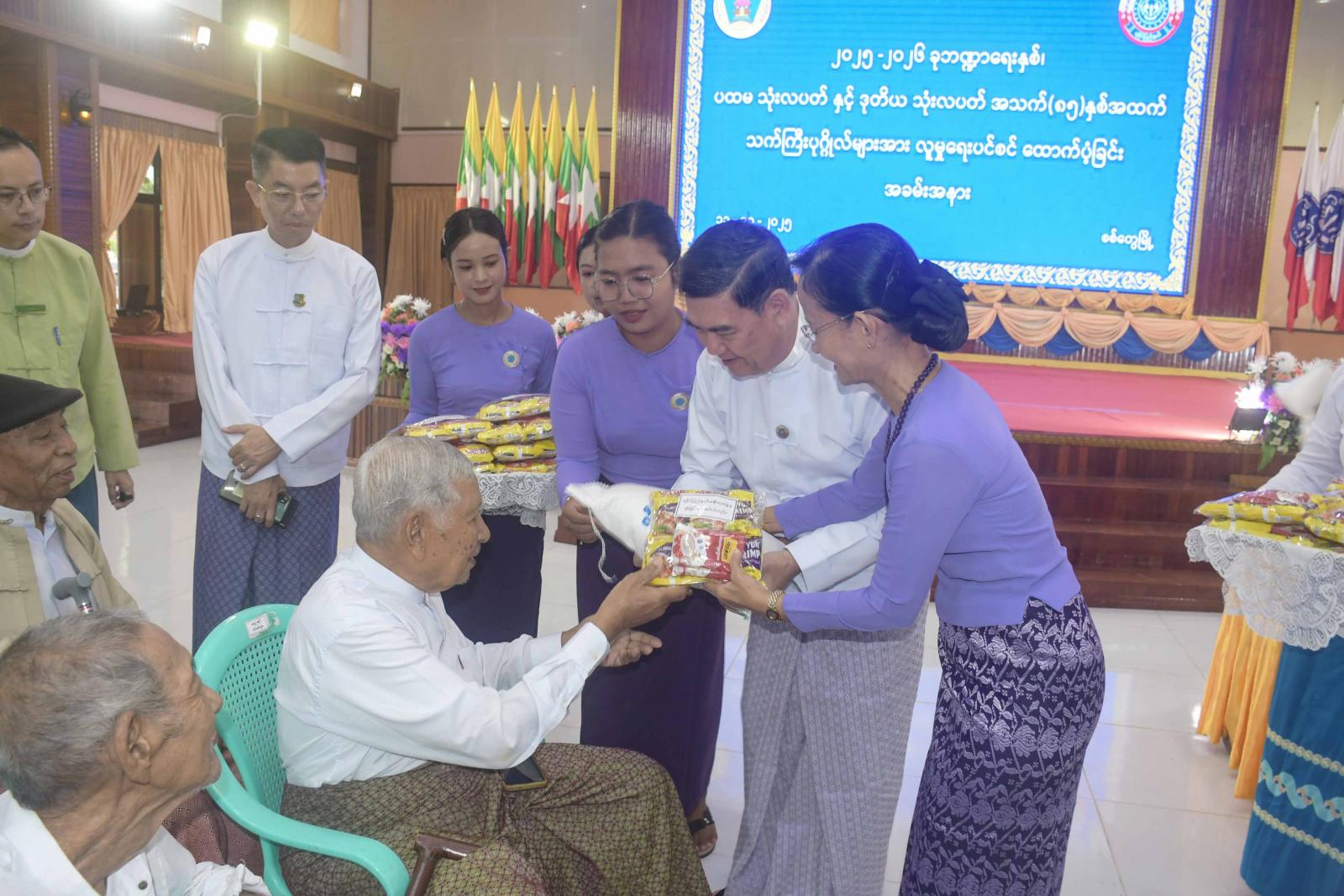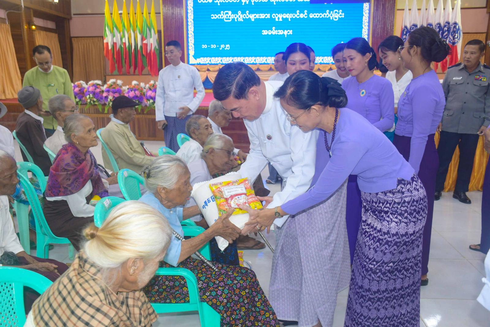 ဆက်လက်၍ ပြည်နယ်ဝန်ကြီးချုပ်နှင့်အဖွဲ့သည် အသက်(၈၅)နှစ် အထက်ရှိ သက်ကြီးပုဂ္ဂိုလ်များအား လူမှုရေးပင်စင်ထုတ်ပေးနေမှုတို့ကို လှည့်လည်ကြည့်ရှုအားပေးကြပြီး လိုအပ်သည်များကို တာဝန်ရှိသူများနှင့် ပေါင်းစပ်ညှိနှိုင်းပေးကြသည်။ ထို့နောက် ပြည်နယ်ဝန်ကြီးချုပ် ဦးထိန်လင်းနှင့်ဇနီး ပြည်နယ်မိခင်နှင့်ကလေးစောင့်ရှောက်မှု ကြီးကြပ်ရေးအဖွဲ့နာယက ဒေါ်ဆွေဆွေမြတ်၊ ပြည်နယ်တရားလွှတ်တော်တရားသူကြီးချုပ်၊ ပြည်နယ်အစိုးရအဖွဲ့ဝင်များနှင့်တာဝန်ရှိသူများက အသက်(၈၅)နှစ်အထက်ရှိ သက်ကြီးပုဂ္ဂိုလ်များအား ရခိုင်ပြည်နယ်အစိုးရအဖွဲ့က ပေးအပ်ချီးမြှင့်သည့်ဆန်နှင့် စားသောက်ဖွေရာများအား ပေးအပ်ချီးမြှင့်ကြသည်။