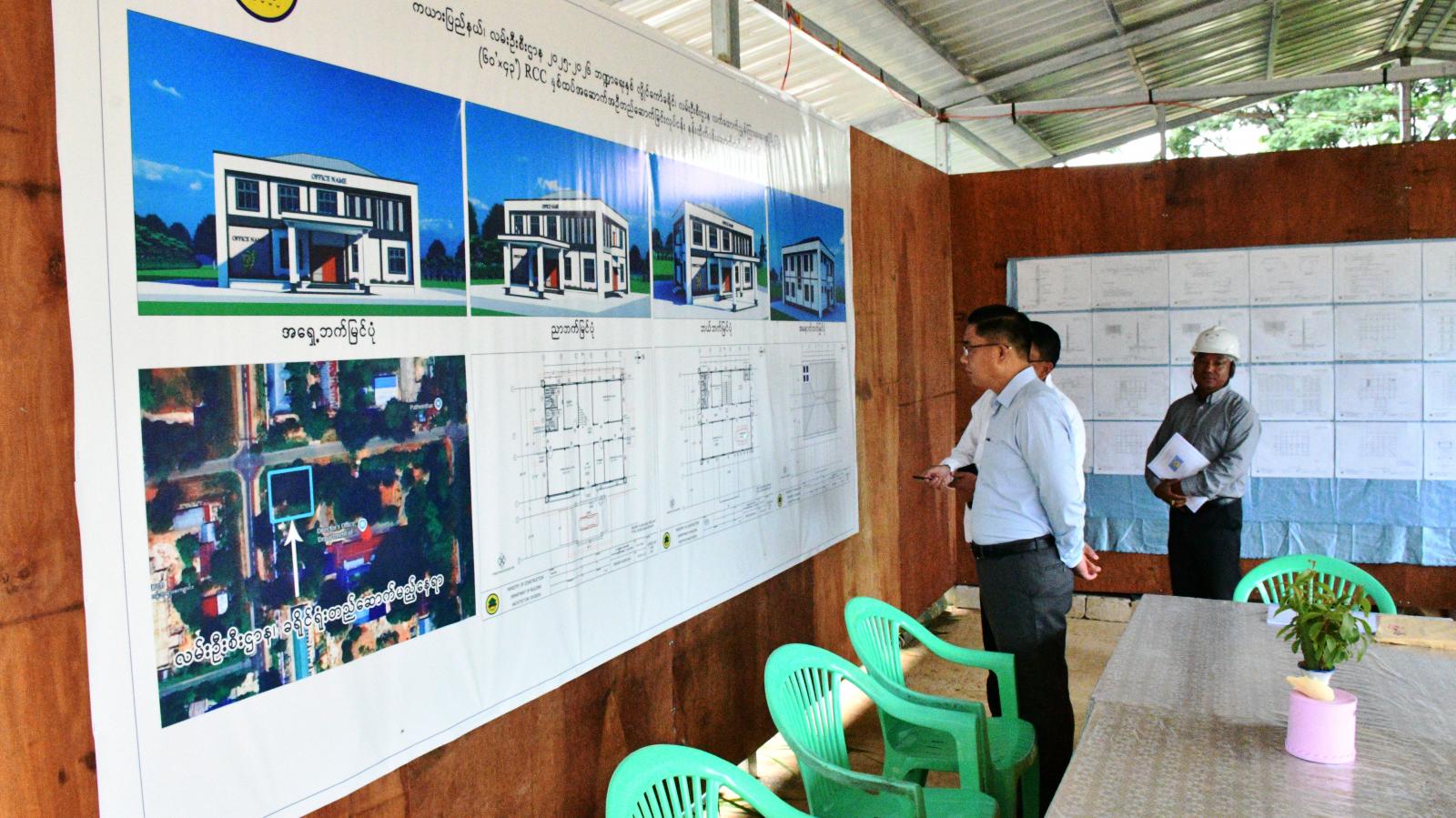 ထို့နောက် ပြည်နယ်ဝန်ကြီးချုပ်နှင့် တာဝန်ရှိသူများသည် ပြည်နယ်လမ်းဦးစီးဌာနရုံးအတွင်းရှိ ဝန်ထမ်းအိမ်ရာများ၊ ဧည့်ရိပ်သာများတည်ဆောက်ပြီးစီးမှု အခြေအနေများအား ကြည့်ရှုစစ်ဆေးခဲ့ပြီးနောက် ရုံးဝင်းအတွင်း ပြည်နယ်ငွေလုံးငွေရင်းရန်ပုံငွေဖြင့် လက်ထောက်ညွှန်ကြားရေးမှူး (မြို့ပြ) ရုံး ၆၄ ပေ x ၄၃ ပေ နှစ်ထပ် သံကူကွန်ကရစ် အဆောက်အအုံ တည်ဆောက်နေမှုကိုကြည့်ရှုစစ်ဆေးပြီး လုပ်ငန်းများ သတ်မှတ်အရည်အသွေးပြည့်မီစွာဖြင့် သတ်မှတ်ကာလပြီးစီးအောင် အလေးထားဆောင်ရွက်ရန် တာဝန်ရှိသူများအား မှာကြားခဲ့ကြောင်း သိရှိရသည်။