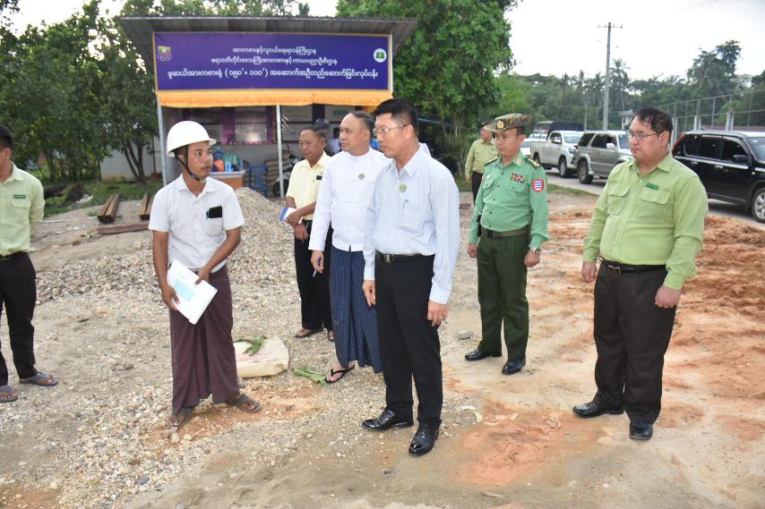 ဆက်လက်၍ တိုင်းဒေသကြီးဝန်ကြီးချုပ်နှင့်အဖွဲ့သည် ပုသိမ်မြို့၊ ကိုးသိန်းအားကစားကွင်းအတွင်းတွင် ဖူဆယ်အားကစားရုံ (၁၅၀ ပေ × ၁၁၀ ပေ) အဆောက်အဦ ဆောက်လုပ်နေမှုအားလည်းကောင်း၊ ပုသိမ်တက္ကသိုလ်ဝန်းအတွင်း Recreation Center သံကူကွန်ကရစ်အဆောက်အဦ တည်ဆောက်နေမှုအား လည်းကောင်း ကြည့်ရှုစစ်ဆေးခဲ့ပြီး တာဝန်ယူဆောက်လုပ်သည့် ကုမ္ပဏီတာဝန်ရှိသူများက အဆောက်အဦဆိုင်ရာ အချက်အလက်များနှင့် လုပ်ငန်းဆောင်ရွက်မှုအခြေအနေများကို ရှင်းလင်းတင်ပြခဲ့ရာ တိုင်းဒေသကြီးဝန်ကြီးချုပ်က အဆောက်အဦဆောက်လုပ်ရာတွင် သတ်မှတ်ထားသည့် စံချိန်စံညွှန်းများနှင့်အညီဆောက်လုပ်ရမည့်အပြင် အဆောက်အဦအရည်အသွေးပြည့်မီရေးနှင့် သတ်မှတ်ကာလအတွင်း အချိန်မီပြီးစီးရေးကိုလည်း အလေးထားဆောင်ရွက်ရန်နှင့် မြေယာရှုခင်းလုပ်ငန်းများကိုလည်း စနစ်တကျ ဆောင်ရွက်ရန် မှာကြားခဲ့သည်။