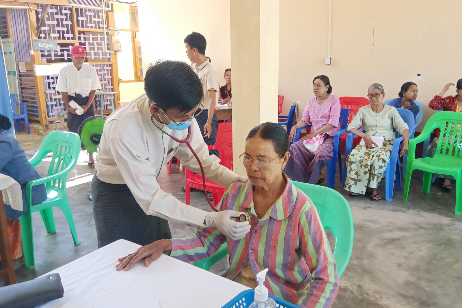 ထိုသို့စစ်ဆေးကုသရာတွင် ကိုယ်အလေးချိန်တိုင်းတာခြင်း၊ သွေးပေါင်ချိန်တိုင်းတာခြင်း၊ ကိုယ်အပူချိန်တိုင်းတာခြင်း၊ ဆီးချို သွေးချိုစစ်ဆေးပေးခြင်း စသည်တို့ကို ဆောင်ရွက်ပေး၍ လိုအပ်သည့် ကုသမှုများအား မြို့နယ်ဆရာဝန်ကြီး ဒေါက်တာသက်ဦးဟန်၊ လက်ထောက် ဆရာဝန်နှင့် ကျန်းမာရေးဆရာမများက အခမဲ့စစ်ဆေးကုသခြင်းများ ဆောင်ရွက်ပေးခဲ့ပြီး အပါတ်စဉ် ဗုဒ္ဓဟူးနေ့တိုင်း စမ်းသပ်စစ်ဆေးကုသပေးလျက်ရှိကြောင်း မြို့နယ်ပြည်သူ့ကျန်းမာရေးနှင့် ကုသရေးဦးစီးဌာနမှ သိရသည်။