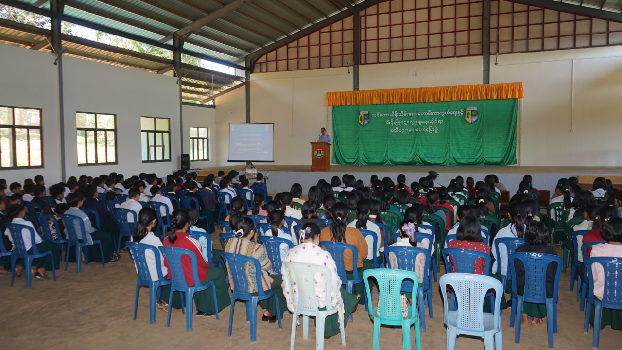 အသိပညာပေးဟောပြောပွဲတွင် အမှတ် (၁) အခြေခံပညာအထက်တန်းကျောင်း ကျောင်းအုပ်ဆရာကြီး ဦးလေးလွင်က အဖွင့်အမှာစကားပြောကြားပြီးနောက် ပအိုဝ်းကိုယ်ပိုင်အုပ်ချုပ်ခွင့်ရဒေသ သစ်တောဦးစီးဌာနမှ ဦးစီးအရာရှိ ဦးဇော်လှိုင်ဆွေက မြန်မာနိုင်ငံတွင် တွေ့ရှိရသော သစ်တောအမျိုးအစားများ၊ သစ်တောဦးစီးဌာနမှ ဆောင်ရွက်လျက်ရှိသော သစ်တောသစ်ပင် ပြုစုထိန်းသိမ်းရေး ဆိုင်ရာလုပ်ငန်းများ၊ ရေချို၏အရေးပါပုံနှင့် ရေချိုကိုချွေတာသုံးစွဲရန်လိုအပ်ပုံ၊ ရေသယံဇာတများ ရေရှည်တည်တံ့စေရန် ရေဝေရေလဲဒေသများ ထိန်းသိမ်းရေးနည်းလမ်းများ၊ တောမီးအန္တရာယ်နှင့် ကြိုတင်ကာကွယ်ရေးနည်းလမ်းများစသည့်အကြောင်းအရာများကို ဟောပြောဆွေးနွေးပြီး သစ်တောထိန်းသိမ်းရေး၊ တောမီးကာကွယ်ရေးအသိပညာပေးလက်ကမ်းစာစောင်များဖြန့်ဝေသည်။