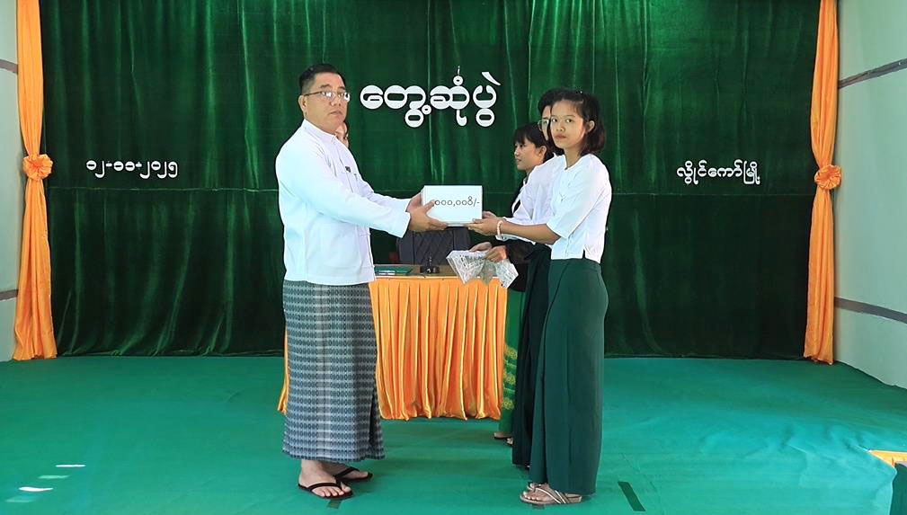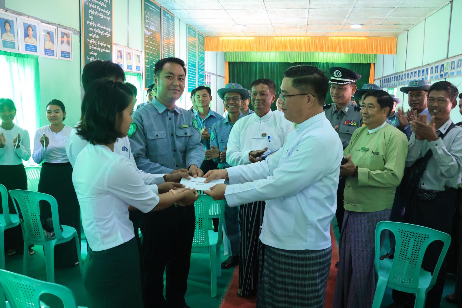 ဆက်လက်၍ ကျောင်းသားကျောင်းသူများက တစ်ဦးချင်းမိတ်ဆက်ခဲ့ကြပြီးနောက် ပြည်နယ်ဝန်ကြီးချုပ်က ပြည်ထောင်စုတိုင်းရင်းသားလူမျိုးများဖွံ့ဖြိုးရေးတက္ကသိုလ်နှင့် ပြည်ထောင်စုတိုင်းရင်းသားလူငယ်များ ဖွံ့ဖြိုးရေးဒီဂရီကောလိပ် (ရန်ကုန်၊စစ်ကိုင်း)သို့ တက်ရောက်မည့် ကျောင်းသား၊ ကျောင်းသူများအတွက် ချီးမြှင့်ငွေများပေးအပ်ရာ ကျောင်းသား ကျောင်းသူများကိုယ်စား ကိုယ်စားလှယ်နှစ်ဦးကလက်ခံယူကြသည်။ ယင်းနောက် လမ်းပန်းဆက်သွယ်ရေးဝန်ကြီးက ကျောင်းသားကျောင်းသူများအတွက် လမ်းစရိတ်ချီးမြှင့်ငွေများ ပေးအပ်ရာ ကျောင်းသားကျောင်းသူကိုယ်စားလှယ်နှစ်ဦးက လက်ခံရယူကြသည်။