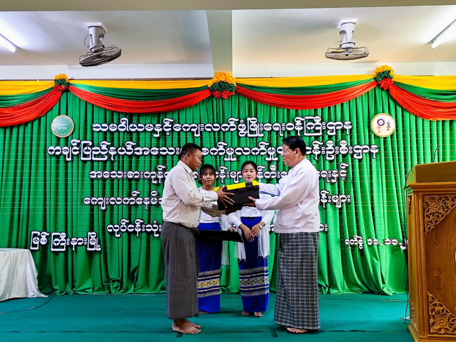 အသေးစားကုန်ထုတ်လုပ်ငန်းများ ဖန်တီးပေးနိုင်ရေးနှင့် ကျေးလက်နေမိသားစု ဝင်ငွေတိုးရေးစီမံကိန်းလုပ်ငန်းများအတွက် နည်းပညာများပေးခြင်း၊ ရင်းနှီးမတည်ရန် ဒေသဖွံ့ဖြိုးရေးလုပ်ငန်းသုံးပစ္စည်းများ ပေးအပ်ပွဲအခမ်းအနားကို နိုဝင်ဘာလ ၁၁ ရက် မွန်းလွဲ ၁ နာရီက ကချင်ပြည်နယ် အသေးစားစက်မှုလက်မှုလုပ်ငန်းဦးစီးဌာန၊ လေ့ကျင့်ပျိုးထောင်ရေးသင်တန်းခန်းမတွင် ကျင်းပခဲ့သည်။