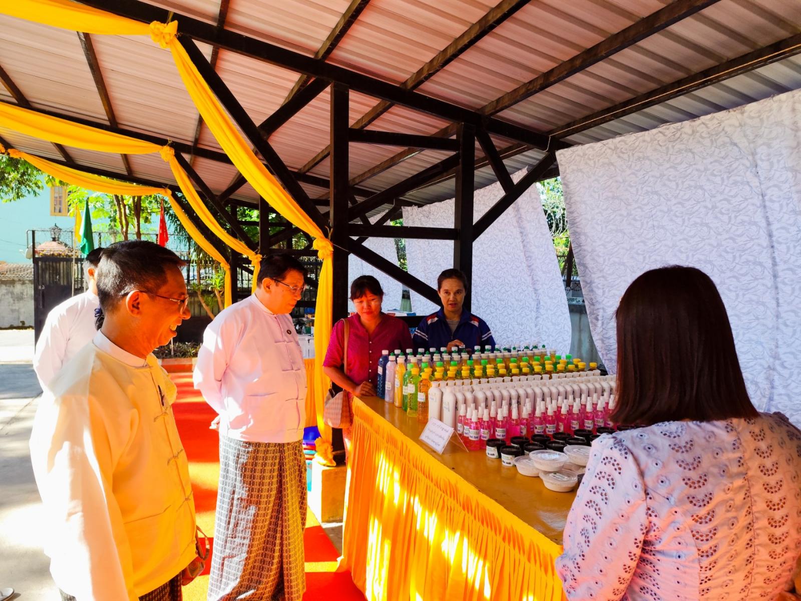 ထို့နောက် ပြည်နယ်ဝန်ကြီးက မြစ်ကြီးနားမြို့ (ပ.လ.န) ကျေးရွာ၊ စီတာပူရပ်ကွက်နှင့် ရမ်ပူရပ်ကွက်တို့မှ ကိုယ်ပိုင်လုပ်ငန်းထူထောင်လိုသော သင်တန်းသား/သူများအား ဒေသဖွံ့ဖြိုးရေးသုံးပစ္စည်းများကို ထောက်ပံ့ပေးအပ်ခဲ့ပြီး ရုံးဝင်းအတွင်း ခင်းကျင်းပြသထားသည့် ဒေသဖွံ့ဖြိုးရေးသုံးပစ္စည်းများကို လှည့်လည်ကြည့်ရှုအားပေးခဲ့ကြသည်။
