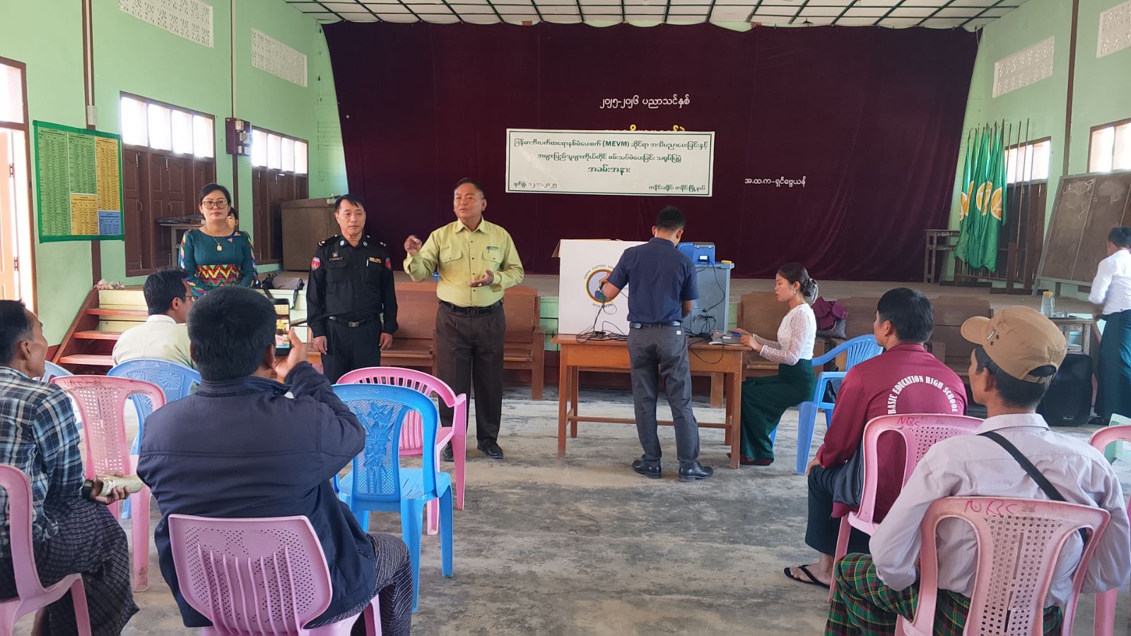 ထိုသို့ အသိပညာပေး ဆောင်ရွက်ရာတွင် တနိုင်းမြို့ အထွေထွေအုပ်ချုပ်ရေးဦးစီးဌာန မြို့အုပ်ချုပ်ရေးမှူး ဦးအောင်စိုးက မဲဆန္ဒရှင်ပြည်သူများအနေဖြင့် မြန်မာအီလက်ထရောနစ် (MEVM) မဲပေးစက်အသုံးပြု၍ မဲပေးပုံအဆင့်ဆင့်ကို ပြည်သူများ ကျယ်ကျယ်ပြန့်ပြန့် သိရှိနိုင်ရေး ရည်ရွယ်၍ အသိပညာပေး ဆောင်ရွက်ပေးရခြင်းဖြစ်ကြောင်း၊ မြို့နယ်ရွေးကောက်ပွဲကော်မရှင် အဖွဲ့ခွဲရုံး၊ ရွေးကောက်ပွဲအရာရှိ ဦးကျော်သက်ပိုင်က မြန်မာအီလက်ထရောနစ် (MEVM) စနစ်ဖြင့် အသုံးပြု၍ မဲပေးရခြင်း၏ ရည်ရွယ်ချက်၊ မဲပေးစက် ဖွဲ့စည်းတည်ဆောက်ပုံနှင့် ပါဝင်သည့် ဆက်စပ်ပစ္စည်းများ၊ မဲပေးစက်များကို ကိုင်တွယ်အသုံးပြုခြင်း၊ မဲရလဒ်များ၊ မဲပေးစက် အသုံးပြုခြင်း၏ အကျိုးကျေးဇူးများကို ရှင်းလင်းပြောကြားခဲ့သည်။