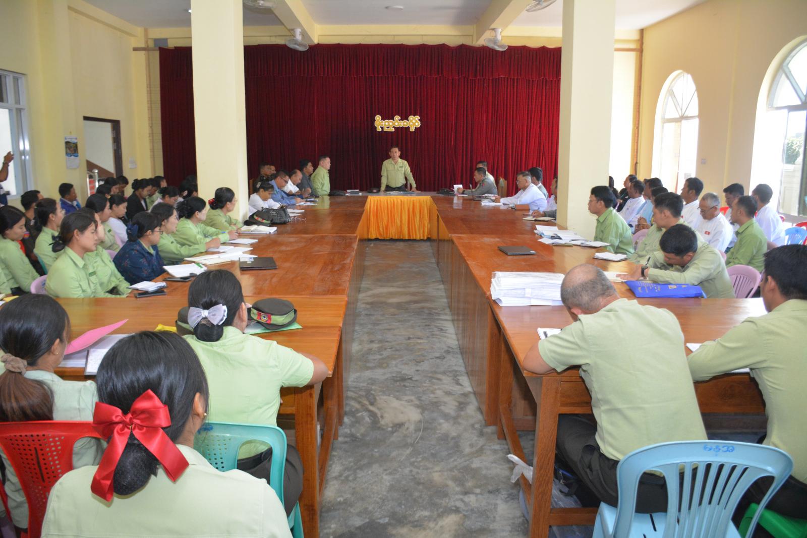 ဆက်လက်၍ တက်ရောက်လာကြသည့် သက်ဆိုင်ရာ ခရိုင်/မြို့နယ်မှ ဌာနဆိုင်ရာ အကြီးအကဲများ၊ ခရိုင်/မြို့နယ်ရွေးကောက်ပွဲ အရာရှိများ၊ ခရိုင်/မြို့နယ်ရွေးကောက်ပွဲကော်မရှင် အဖွဲ့ခွဲမှ ဥက္ကဋ္ဌနှင့် အဖွဲ့ဝင်များ၊ ရပ်ကွက်/ကျေးရွာများမှ စာရေးဝန်ထမ်းတို့က သက်ဆိုင်ရာ လုပ်ငန်းကဏ္ဍအလိုက် လက်ရှိလုပ်ငန်းများဆောင်ရွက်နေမှုနှင့် လုပ်ငန်းလိုအပ်ချက်များကို အသီးသီး ပါဝင်ဆွေးနွေးကြရာ ခရိုင်စီမံခန့်ခွဲရေးနှင့် အုပ်ချုပ်ရေးကော်မတီ ဥက္ကဋ္ဌက ပါတီစုံဒီမိုကရေစီ အထွေထွေရွေးကောက်ပွဲ အောင်မြင်စွာ ကျင်းပနိုင်ရေးအတွက် လိုအပ်သည်များကို ပူးပေါင်းပါဝင် ဖြည့်စွက်ဆွေးနွေး ပြောကြားခဲ့သည်။