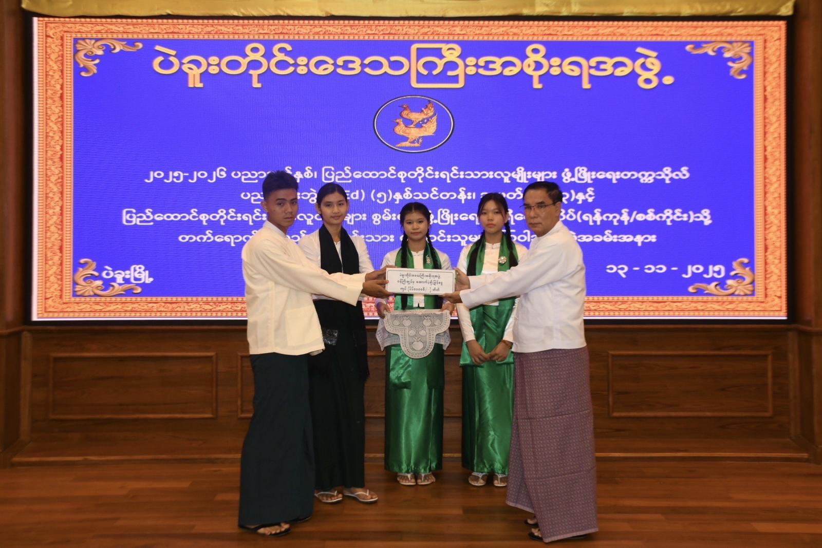 ထို့နောက် တိုင်းဒေသကြီး ဝန်ကြီးချုပ် ဦးမျိုးဆွေဝင်းက ၂၀၂၅-၂၀၂၆ ပညာသင်နှစ် ပြည်ထောင်စု တိုင်းရင်းသားလူမျိုးများဖွံ့ဖြိုးရေး တက္ကသိုလ် ပညာရေးဘွဲ့ (B.Ed) (၅)နှစ်သင်တန်း အမှတ်စဉ်(၁၃)နှင့် ပြည်ထောင်စုတိုင်းရင်းသားလူငယ်များ စွမ်းရည်ဖွံ့ဖြိုးရေး ဒီဂရီကောလိပ် (ရန်ကုန်/စစ်ကိုင်း) တက်ရောက်မည့် သင်တန်းသား/သူများအတွက် ထောက်ပံ့ငွေကျပ်(၆၆) သိန်းအား ချီးမြှင့်ပေးအပ်ခဲ့ရာ သင်တန်းသားတစ်ဦး က ကျေးဇူးတင်စကား ပြန်လည်ပြော ကြားခဲ့သည်။ပဲခူးတိုင်းဒေသကြီးအတွင်းရှိ မြို့နယ်များမှ ၂၀၂၅-၂၀၂၆ ပညာသင်နှစ်တွင် ပြည်ထောင်စု တိုင်းရင်းသား လူမျိုးများဖွံ့ဖြိုးရေး တက္ကသိုလ် ပညာရေးဘွဲ့ (B.Ed) (၅)နှစ်သင်တန်း အမှတ်စဉ်(၁၃)နှင့် ပြည်ထောင်စုတိုင်းရင်းသားလူငယ်များ စွမ်းရည်ဖွံ့ဖြိုးရေး ဒီဂရီကောလိပ်(ရန်ကုန်/စစ်ကိုင်း)သို့ သင်တန်းသား/သူ (၂၀)ဦး တက်ရောက်သွား မည်ဖြစ်ကြောင်း သတင်းရရှိသည်။