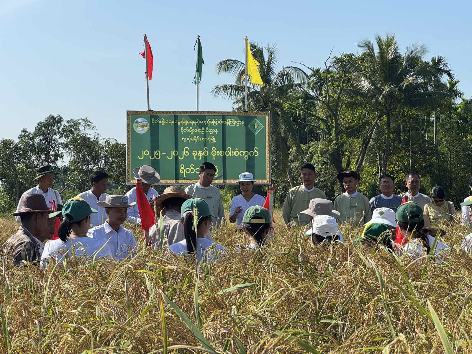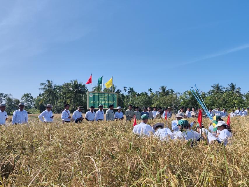 ဧရာဝတီတိုင်းဒေသကြီး၊ ဖျာပုံခရိုင်၊ ဖျာပုံမြို့နယ်၊ ကျုံတာရှမ်းကွင်းကျေးရွာအုပ်စု ၊ ရှမ်းကွင်း ကျေးရွာ တောင်သူ ဦးနေမျိုးဝင်း ကွင်းအမှတ် ၄၅၇ A ၊ ဦးပိုင်အမှတ် ၂၆ / ၇ ၊ လယ်မြေ(၃) ဧက တွင် ပေါ်ဆန်းရင် (ဘေးကြားတောင်ပျံ) စပါးမျိုးစံကွက် ရိတ်သိမ်းပွဲကို နိုဝင်ဘာလ ၁၃ ရက်နေ့ နံနက် ၉ နာရီခွဲအချိန်က အဆိုပါကျေးရွာတွင်ပြုလုပ်ခဲ့ကြောင်းသိရသည်။