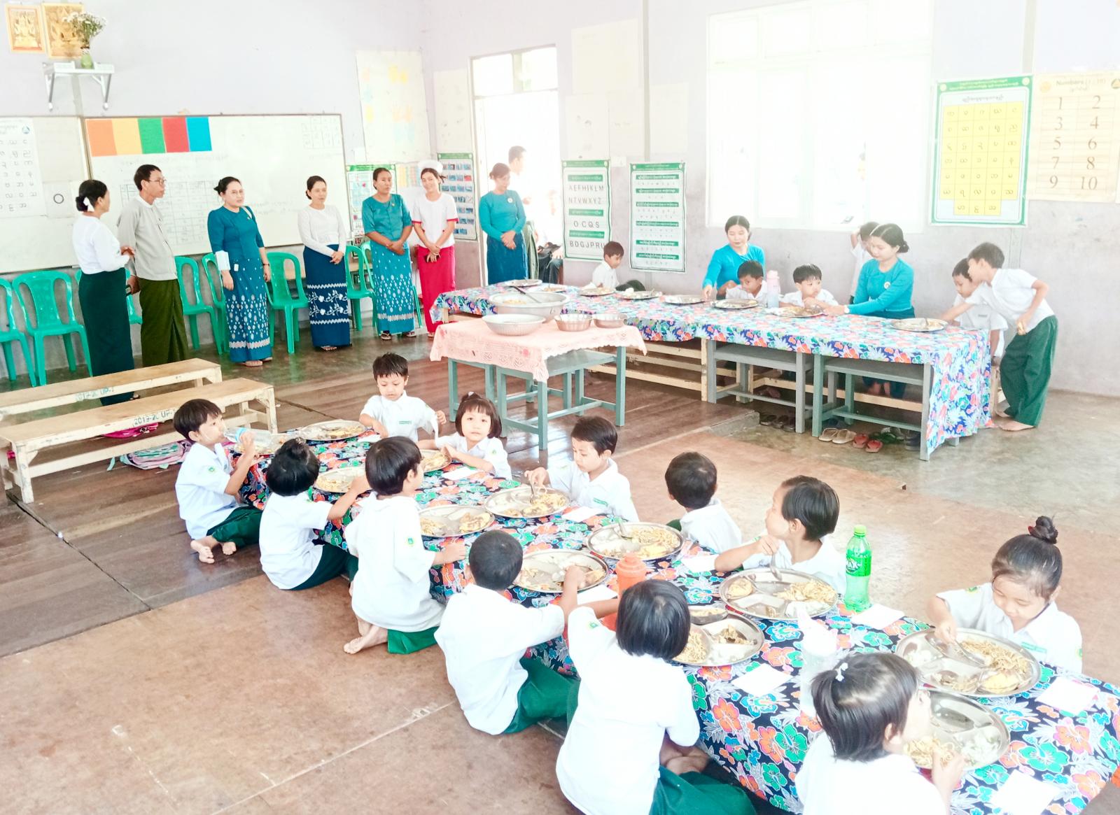 ထိုသို့ဆောင်ရွက်ရာတွင် သက်ဆိုင်ရာကျောင်းအသီးသီးမှ ကျောင်းအုပ် ဆရာ၊ ဆရာမကြီးများ၊ ဆရာ၊ ဆရာမများနှင့် ကျောင်းသားမိဘများစုပေါင်း၍ ကျောင်းသား၊ ကျောင်းသူများအား အာဟာရဖြစ်စေမည့် အစားအစာများအားကျွေးမွေးခဲ့ကြသည်။ အဆိုပါ ကျောင်းကျန်းမာရေး သီတင်းပတ်အဖြစ် (စတုတ္ထအကြိမ်) ကျောင်းသား၊ ကျောင်းသူများအား အာဟာရကျွေးမွေးရာ အမှတ်(၂) အခြေခံပညာအထက်တန်းကျောင်းသို့ မြို့နယ်ပညာရေးမှူးဆရာကြီး ဦးအုန်းကျော်နှင့် ဆရာမများ၊ မြို့နယ်ပြည်သူ့ကျန်းမာရေးနှင့် ကုသရေးဦးစီးဌာနမှူး ဒေါက်တာရွှေဝါမြင့် နှင့်ဝန်ထမ်းများ၊ ဌာနဆိုင်ရာ တာဝန်ရှိသူများက ကြည့်ရှုအားပေးခဲ့ကြသည်။