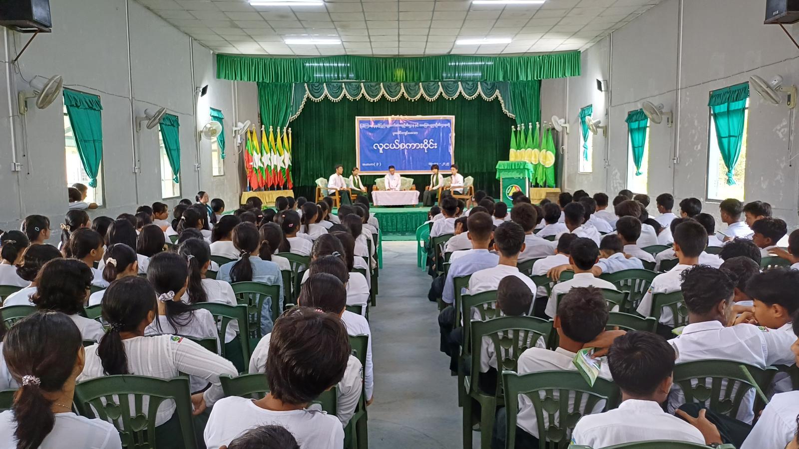 ဧရာဝတီတိုင်းဒေသကြီး၊ ဖျာပုံခရိုင်၊ဖျာပုံမြို့နယ်တွင် ကျောင်းသား၊ ကျောင်းသူများ ဗလငါးတန်နှင့်ပြည့်စုံပြီး အသိပညာဗဟုသုတတိုးပွားစေရန်၊ နှုတ်မှုစွမ်းရည် ထက်မြက်စေရန်၊ လူငယ်အချင်းချင်းပူးပေါင်းဆောင်ရွက်တတ်သည့် အလေ့အကျင့် ကောင်းများရရှိစေရန်၊ စာကြည့်တိုက်နှင့်ရင်းနှီးကျွမ်းဝင်မှုရှိစေရန်၊ ကိုယ်ကျင့်တရား ကောင်းမွန်သည့် လူတော်၊လူကောင်းများဖြစ်လာစေရန်၊ စာပေဖတ်ရှုတတ်သည့် အလေ့အကျင့်ကောင်းများဖြစ်လာစေရန်၊ အသိပညာဗဟုသုတတိုးပွားစေရန်နှင့် ဘက်စုံထူးချွန်ထက်မြက်သော အနာဂတ်လူငယ်လူရွယ်များ ပေါ်ထွက်လာစေရန် ရည်ရွယ်၍ ဖျာပုံခရိုင် ပြန်ကြားရေးနှင့်ပြည်သူ့ဆက်ဆံရေးဦးစီးဌာနနှင့် အခြေခံပညာဦးစီးဌာနတို့ ပူးပေါင်းကျင်းပသော စာဖတ်ရှိန်မြှင့်တင်ရေး “လူငယ်စကားဝိုင်း” ဆွေးနွေးပွဲကို ယနေ့နံနက်ပိုင်းအချိန်က ဖျာပုံမြို့နယ် အ-ထ-က (၃) ကျောင်း၊ မြမဥ္ဇူခန်းမ၌ ကျင်းပပြုလုပ်ခဲ့ကြောင်း သိရသည်။