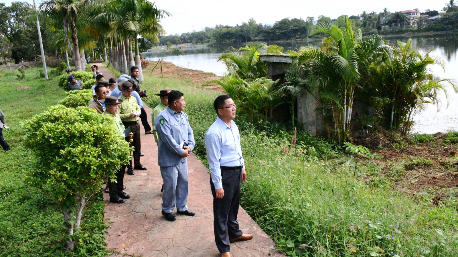ဆက်လက်၍ အများပြည်သူများ စိတ်အေးချမ်းသာစွာ လာရောက်အပန်းဖြေ အနားယူနိုင်ရန် နှင့် ဒီဇင်ဘာ လူထုအားကစားလတွင် ကျန်းမာရေးလှုပ်ရှားမှုများ ပြုလုပ်နိုင်ရန်အတွက် ထေးငှားလျား ကန်၊ တံတားနှင့် ကန်ပတ်လမ်းတစ်လျှောက် သန့်ရှင်းသာယာရေးနှင့် စိမ်းလန်း စိုပြည်ရေးဆောင် ရွက်ရန် လိုအပ်လျက်ရှိသည့် အခြေအနေများကိုလှည့်လည်ကြည့်ရှု စစ်ဆေးပြီး ပြည်နယ်ဝန် ကြီးချုပ်က ထေးငှားလျားကန်အတွင်းရှိ ကန်ကူးတံတားကြံ့ခိုင်မှုရှိစေရေး၊ ကန်ပတ် လမ်းတစ်လျှောက်တွင် စိုက်ပျိုးထားသည့် ပန်းအလှပင်များ စနစ်တကျပြုပြင် ထိန်းသိမ်းရန်နှင့် ကန်ပတ်လမ်းမီးများ ထွန်းညှိပေးနိုင်ရေး ဆောင်ရွက်ရန် တာဝန်ရှိသူများအား မှာကြားခဲ့သည်။ ယင်းနောက် လွိုင်ကော်တက္ကသိုလ်အဝင်လမ်းမကြီးအား ပြည်နယ်လမ်းဦးစီးဌာနကဒုတိယ ရေပိတ်လွှာ လောင်းခြင်းလုပ်ငန်းဆောင်ရွက်နေမှုကို ကြည့်ရှုစစ်ဆေးရာ လုပ်ငန်းဆောင်ရွက်မှုများ အား တာဝန်ရှိသူများက ရှင်းလင်းတင်ပြကြသည်။