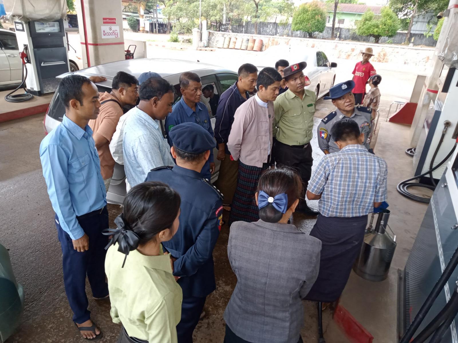 အဆိုပါစက်သုံးဆီဆိုင်များ သတ်မှတ်စျေးနှုန်းအတိုင်းရောင်းချခြင်း ရှိ၊မရှိ ကွင်းဆင်း စစ်ဆေးခြင်းကို မြို့နယ် ရေနံနှင့်ရေနံထွက်ပစ္စည်းဆိုင်ရာ လုပ်ငန်းများထိန်းသိမ်းကြီးကြပ်ရေး ဆပ်ကော်မတီဥက္ကဋ္ဌ ဦးစည်သူအောင်၊ မြို့နယ်ရဲတပ်ဖွဲ့မှူး ရဲမှူးမင်းတင်နှင့် ကော်မတီ အဖွဲ့ဝင်များပူးပေါင်း၍ မြို့ပေါ်ရပ်ကွက်အတွင်းရှိ r,q စက်သုံးဆီအရောင်းဆိုင်များဖြစ်သော SOLO ဆီဆိုင် ၊DENKO ဆီဆိုင်၊ PUMAR ဆီဆိုင်၊ ROYAL ဆီဆိုင်နှင့် ပြည့်ဝဆီဆိုင်များသို့ သွာရောက်ကာ စက်သုံးဆီရောင်းချသည့်စျေးနှုန်းများစစ်ဆေးခြင်း၊ ရောင်းချဆီလီတာများ ပြည့်၊ မပြည့်စစ်ဆေးခြင်းများကို ဆောင်ရွက်ခဲ့ကြပြီး စက်သုံးဆီအသုံးပြုသူများ ဆီ ပြတ်တောက်မှုမရှိအောင် စနစ်တကျရောင်းချပေးရေးနှင့် လိုအပ်သည်များကို တာဝန်ရှိသူ များအား ထပ်ဆင့်မှာကြားခဲ့ကြကြောင်း သိရသည်။