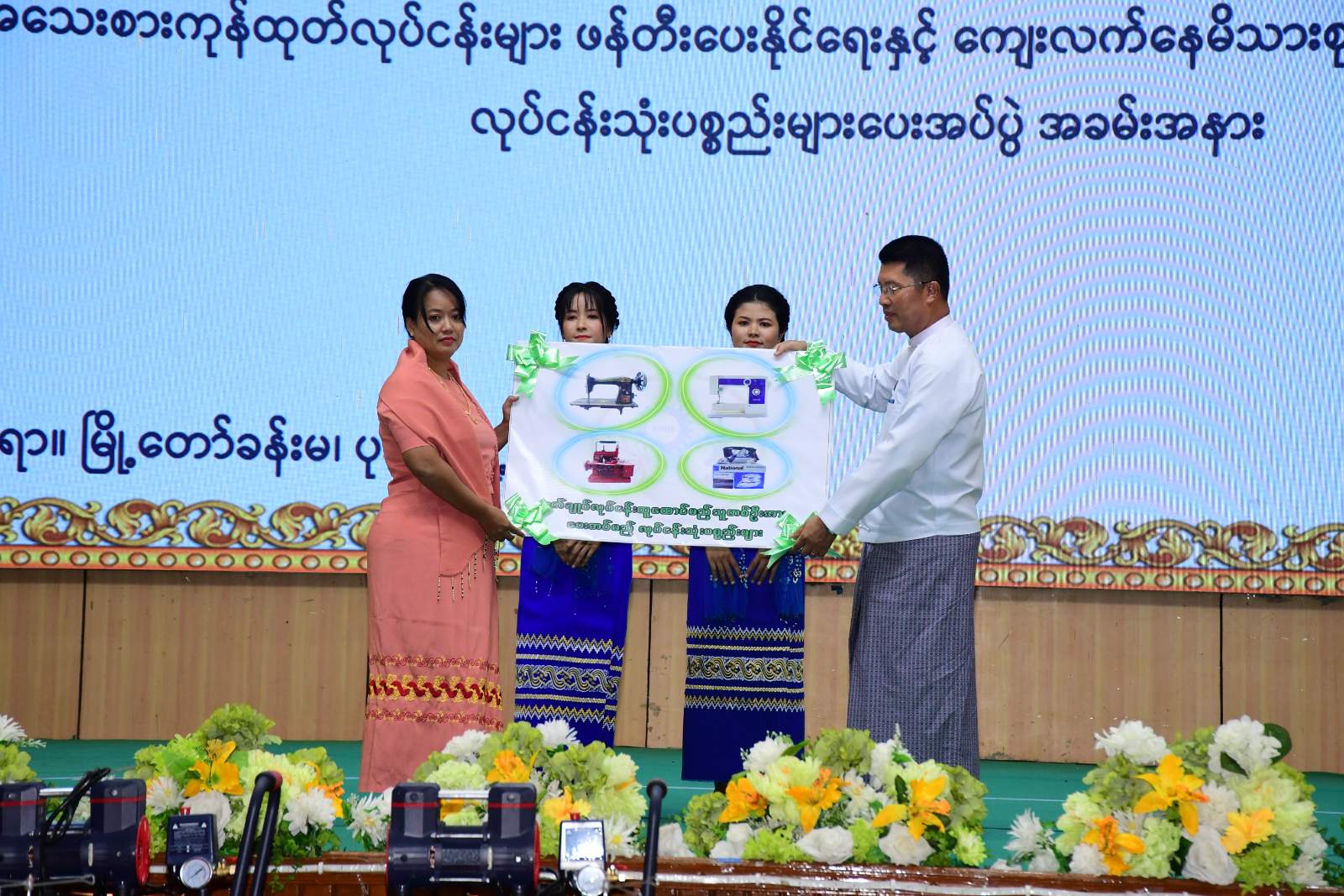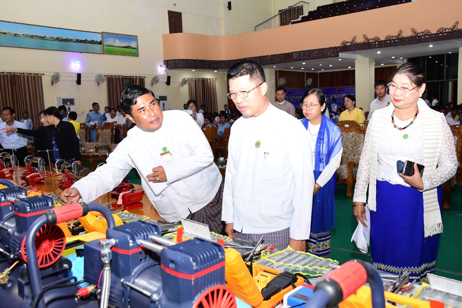 ဆက်လက်၍ ဧရာဝတီတိုင်းဒေသကြီး အသေးစားစက်မှုလက်မှုလုပ်ငန်းဦးစီးဌာနမှ တိုင်းဒေသကြီး ဦးစီးမှူးက စီမံကိန်းသင်တန်းဖွင့်လှစ်ခဲ့သည့် လုပ်ငန်းများအကြောင်း ရှင်းလင်းတင်ပြခဲ့သည်။ ထို့နောက် ၂၀၂၅-၂၀၂၆ ဘဏ္ဍာရေးနှစ်အတွင်း ဧရာဝတီတိုင်းဒေသကြီး ပုသိမ်ခရိုင်၊ ဖျာပုံခရိုင်၊ မအူပင်ခရိုင် မြောင်းမြခရိုင်နှင့် ဟင်္သာတခရိုင်တို့တွင် ဆောင်ရွက်ခဲ့သော အသေးစားကုန်ထုတ်လုပ်ငန်းများ ဖန်တီးပေးနိုင်ရေးနှင့် ကျေးလက်နေမိသားစုဝင်ငွေတိုးရေးစီမံကိန်းတွင်အခြေခံနှင့် မွမ်းမံသင်တန်းတက်ရောက်ခဲ့ပြီး ထူးချွန်၍ လုပ်ငန်းထူထောင်မည့်သူများအား ဒေသဖွံ့ဖြိုးရေးလုပ်ငန်းသုံးပစ္စည်းများကို တိုင်းဒေသကြီးဝန်ကြီးချုပ်၊ တိုင်းဒေသကြီးတရာသူကြီးချုပ်၊ အစိုးရအဖွဲ့ဝင်ဝန်ကြီးများနှင့် အသေးစားစက်မှုလက်မှုလုပ်ငန်းဦးစီးဌာနမှ ဒုတိယညွှန်ကြားရေးမှူးချုပ်(နည်းပညာ)တို့က လုပ်ငန်းသုံးပစ္စည်းများ ပေးအပ်ခဲ့သည်။ ဆက်လက်၍ သင်တန်းသားများကိုယ်စား လုပ်ငန်းထူထောင်မည့်သူတစ်ဦးက ကျေးဇူးတင်စကားပြောကြားခဲ့ပြီးနောက် တိုင်းဒေသကြီးဝန်ကြီးချုပ်နှင့် ဧည့်သည်တော်များသည် စုပေါင်းမှတ်တမ်းတင် ဓာတ်ပုံရိုက်ကူးခဲ့ပြီး လူသုံးကုန်လုပ်ငန်းထူထောင်မည့်သူများအတွက် ပေးအပ်မည့်ပစ္စည်းများနှင့် တစ်လုံးထိုး ဒီဇယ်အင်ဂျင်လုပ်ငန်း ထူထောင်မည့်သူများအတွက် ပေးအပ်မည့်ပစ္စည်းများကို လှည့်လည်ကြည့်ရှုခဲ့ကြောင်း သိရသည်။