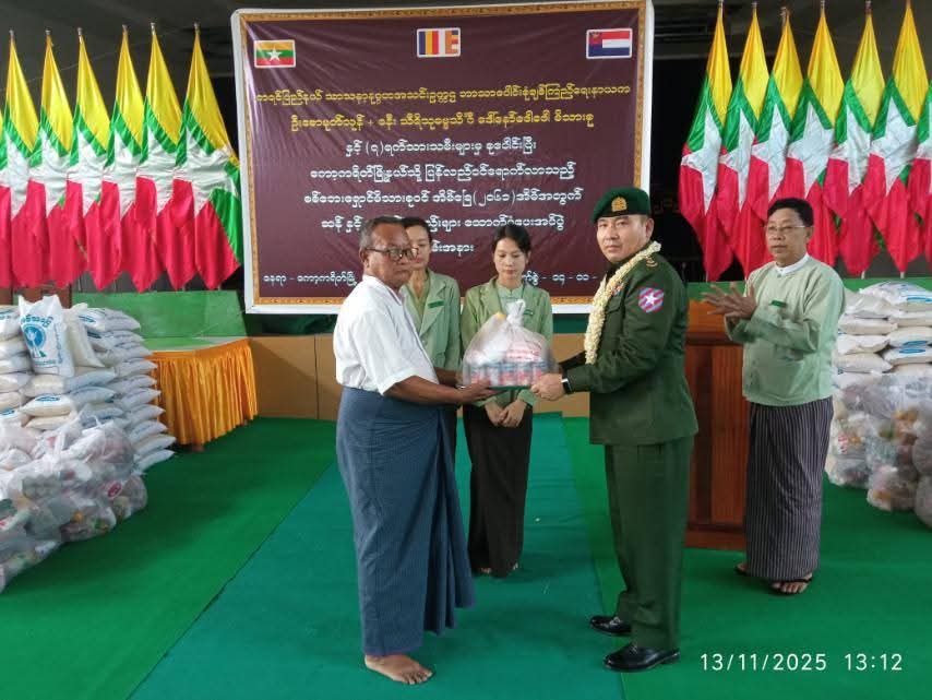 ကော့ကရိတ်မြို့နယ်အတွင်း ပြန်လည်ဝင်ရောက်လာသော စစ်ဘေးရှောင်မိသားစုဝင်များအား နေထိုင်စားသောက်မှုအဆင်ပြေစေရေးအတွက် ကရင်ပြည်နယ် သာသန့ာနုဂ္ဂဟအသင်းဥက္ကဋ္ဌ ဘာသာပေါင်းစုံ ချစ်ကြည်ရေးနာယက ဦးစောမုတ်သုန်နှင့် ၇ ရက်သားသမီးများ စုပေါင်း၍ ယမန်နေ့မွန်းလွဲ ၃:၀၀ နာရီက အမှတ်(၃)ရပ်ကွက်၊ ဒေါနခန်းမ၌ အခြေခံစားသောက်ကုန်ပစ္စည်းများ ဖြန့်ဝေပေးအပ်ရာ နယ်မြေခံတပ်မတော်အရာရှိကြီးများ၊ ခရိုင်/မြို့နယ်စီမံခန့်ခွဲရေးနှင့်အုပ်ချုပ်ရေးကော်မတီဥက္ကဋ္ဌနှင့်အဖွဲ့ဝင်များ၊ ဌာနဆိုင်ရာတာဝန်ရှိသူများ၊ အလှူရှင်များ၊ ရပ်ကွက်အုပ်ချုပ်ရေးမှူးများနှင့် ပြည်သူများ စုစုပေါင်း (၁၂၀)ဦး တက်ရောက်ကြောင်း သိရသည်။