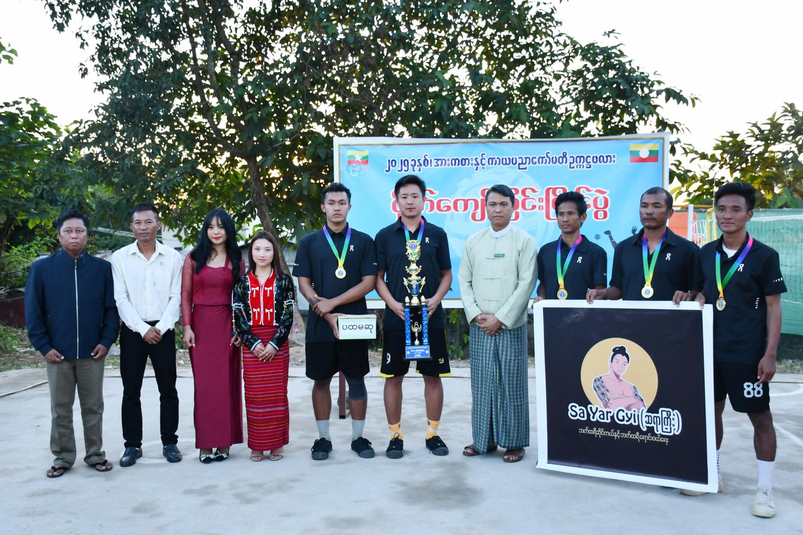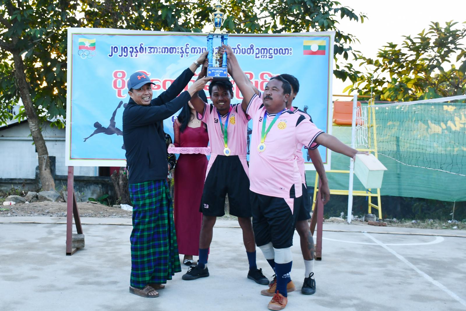 ပြိုင်ပွဲအပြီးတွင် ဆုများကို ဆက်လက်ချီးမြှင့်ရာ ပိုက်ကျော်ခြင်း (၂)ယောက်တွဲတွင် ပထမ၊ ဒုတိယနှင့် တတိယနှင့် (၃)ယောက်တွဲပြိုင်ပွဲတွင် ဒုတိယနှင့် တတိယဆုရရှိကြသော အသင်းများအား တာဝန်ရှိသူများက ဆုများပေးအပ်ခဲ့ပြီး (၃)ယောက်တွဲပြိုင်ပွဲတွင် ပထမဆုရရှိသော အသင်းအား ဂုဏ်ပြုဆုငွေ၊ ဆုတံဆိပ်နှင့် ဒိုင်းဆုအား မြို့နယ်အားကစားနှင့်ကာယပညာကော်မတီဥက္ကဋ္ဌ မြို့နယ်အုပ်ချုပ်ရေးမှူး ဦးဇော်လင်းက ပေးအပ်ချီးမြှင့်ခဲ့ကြောင်း သိရသည်။