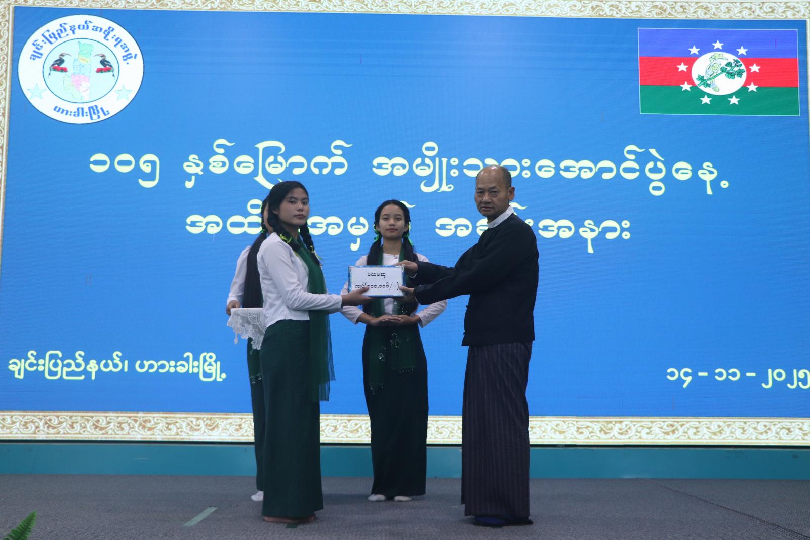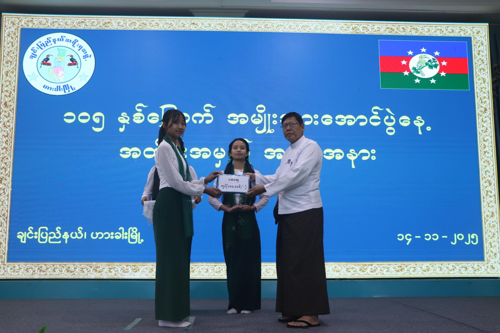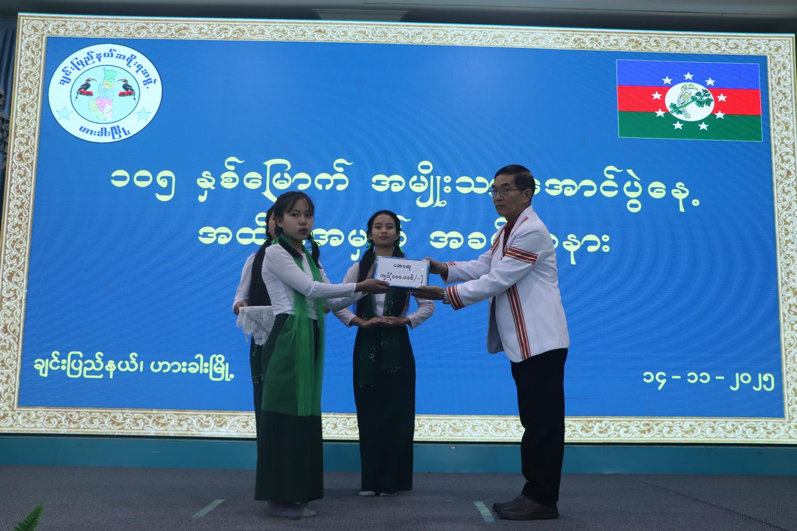 ယင်းနောက် ဟားခါးမြို့နှင့် တီးတိန်မြို့တွင် အမျိုးသားအောင်ပွဲနေ့အထိမ်းအမှတ်အဖြစ် ကျင်းပပြုလုပ်သည့် အခြေခံပညာအထက်တန်းအဆင့်စာစီစာကုံးပြိုင်ပွဲတွင် ပထမ၊ ဒုတိယ၊ တတိယရရှိသူများအား ခေတ္တချင်းပြည်နယ်ဝန်ကြီးချုပ်၊ လုံခြုံရေးနှင့် နယ်စပ်ရေးရာဝန်ကြီး ဗိုလ်မှူးကြီး ခင်မောင်ထွေးကလည်းကောင်း၊ အထက်တန်းအဆင့် ကဗျာပြိုင်ပွဲတွင် ပထမ၊ ဒုတိယ၊ တတိယ ရရှိသူများအား ပြည်နယ်တရားလွှတ်တော်တရားသူကြီးချုပ် ဦးနေစိုးကလည်းကောင်း၊ အလယ်တန်းအဆင့် စာစီစာကုံးပြိုင်ပွဲတွင် ပထမ၊ ဒုတိယ၊ တတိယရရှိသူများကို စီးပွားရေးရာဝန်ကြီး ဒေါက်တာလျန်ဇခုပ်ကလည်းကောင်း၊ အလယ်တန်းအဆင့် ကဗျာပြိုင်ပွဲတွင် ပထမ၊ ဒုတိယ၊ တတိယရရှိသူများကို သယံဇာတရေးရာဝန်ကြီး ဦးကောလ်လျန်ထန်းကလည်းကောင်း ဂုဏ်ပြုလွှာနှင့် ဆုငွေများပေးအပ်ချီးမြှင့်ကြပြီး အမှတ် (၁) အခြေခံပညာအထက်တန်းကျောင်း ကျောင်းသား ၊ ကျောင်းသူများက “ မြန်မာ့ကျောင်း ” သီချင်းဖြင့် သီဆိုဖျော်ဖြေကြကာ (၁၀၅)နှစ်မြောက် အမျိုးသားအောင်ပွဲနေ့အထိမ်းအမှတ် အခမ်းအနားရုပ်သိမ်းသည်။