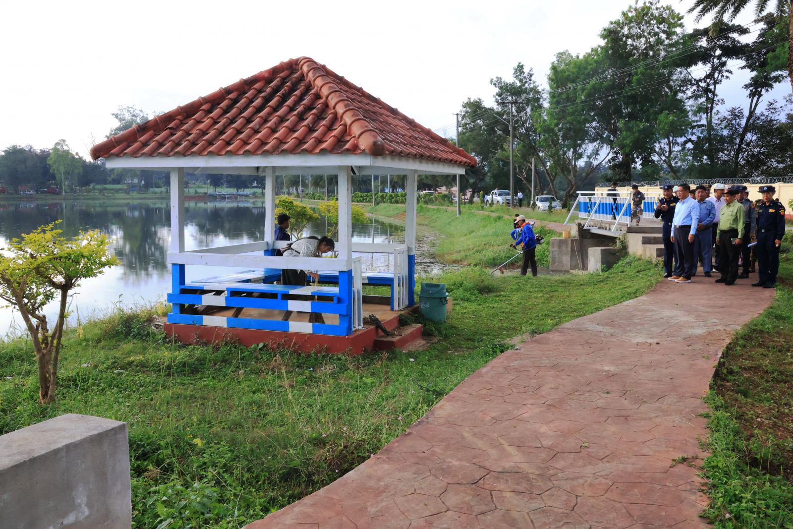 ဦးစွာ ပြည်နယ်ဝန်ကြီးချုပ်နှင့် တာဝန်ရှိသူများသည် လွိုင်ကော်မြို့၊ ထေးငှားလျားကန်နှင့် ကန်ပတ်ဝန်းကျင်၊ ကန်ပတ်လမ်းတစ်လျှောက် သန့်ရှင်းသာယာလှပရေးအတွက် နယ်မြေခံတပ်ရင်း တပ်ဖွဲ့များ၊ ရဲတပ်ဖွဲ့ဝင်များ၊ မီးသတ်တပ်ဖွဲ့ဝင်များနှင့် ဌာနဆိုင်ရာဝန်ထမ်းများက စုပေါင်း သန့်ရှင်းရေးဆောင်ရွက်နေမှုကို လှည့်လည်ကြည့်ရှုအားပေးသည်။ ပြည်နယ်ဝန်ကြီးချုပ်ကကန်နှင့် ကန်ပတ်ဝန်းကျင် စိမ်းလန်းစိုပြည်ရေး မြေလွတ်နေရာများ၌ မြေယာရှုခင်းပန်းအလှပင် များစိုက်ပျိုးရန်၊ အများပြည်သူများ စိတ်အေးချမ်းသာစွာ လာရောက်လည်ပတ်အနားယူအပန်းဖြေနိုင်ရေး သန့်ရှင်းသာယာရေးမပြတ်ဆောင်ရွက်ပေးရန်၊ ကျန်းမာရေးလေ့ကျင့်ခန်းများ ပြုလုပ်နိုင်ရန်အတွက် ကိုယ်ကာယလေ့ကျင့်ခန်း Outdoor Fitness ပစ္စည်းများကို နေ့စဉ်အသုံးပြုနိုင်အောင် ဆောင်ရွက်ပေးရန်နှင့် ကန်ပတ်ဝန်းကျင်တွင် အမှိုက်များစနစ်တကျ စွန့်ပစ်နိုင်ရေး အမှိုက်ပုံးများ လုံလောက်စွာထားရှိရန် တာဝန်ရှိသူများအား မှာကြားခဲ့သည်။