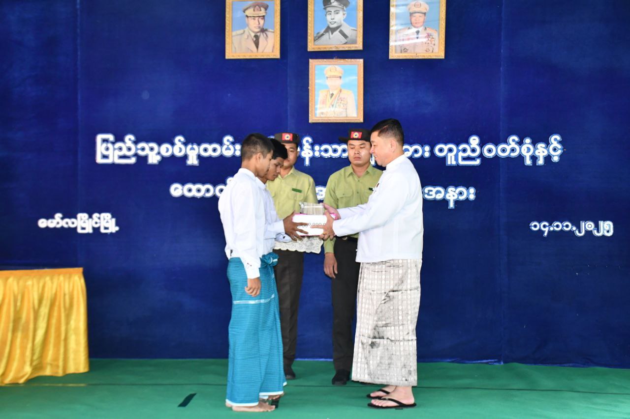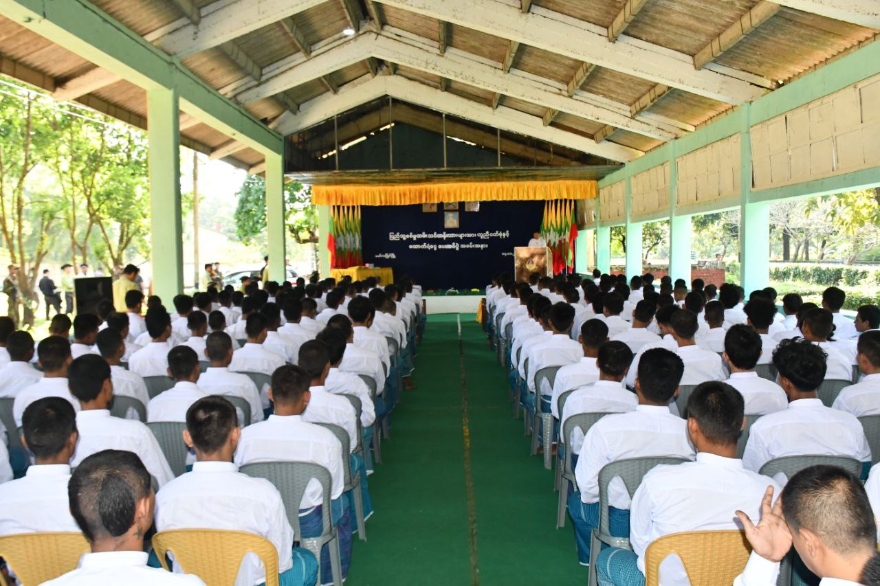 ထို့နောက် ပြည်သူ့စစ်မှုထမ်းသင်တန်း အမှတ်စဉ် (၁၉) (၁၁/၂၀၂၅)သို့ တက်ရောက်မည့် နိုင်ငံ့သားကောင်းရတနာများအတွက် ဂုဏ်ပြုချီးမြှင့်ငွေများနှင့် ဝတ်စုံများပေးအပ်ခဲ့ပြီး နိုင်ငံ့သားကောင်းရတနာ သင်တန်းသားများအား တစ်ဦးချင်းရင်းနှီးနွေးထွေးစွာ တွေ့ဆုံနှုတ်ဆက်၍ အားပေးစကားများပြောကြားပြီး သင်တန်းသား အိပ်ဆောင်များ၊ ထမင်းစားဆောင်များအား လိုက်လံကြည့်ရှုစစ်ဆေးကာ လိုအပ်သည်များအား တာဝန်ရှိသူများနှင့် ပေါင်းစပ်ညှိနှိုင်း ဖြည့်ဆည်းဆောင်ရွက်ပေးခဲ့ကြောင်း သိရှိရသည်။