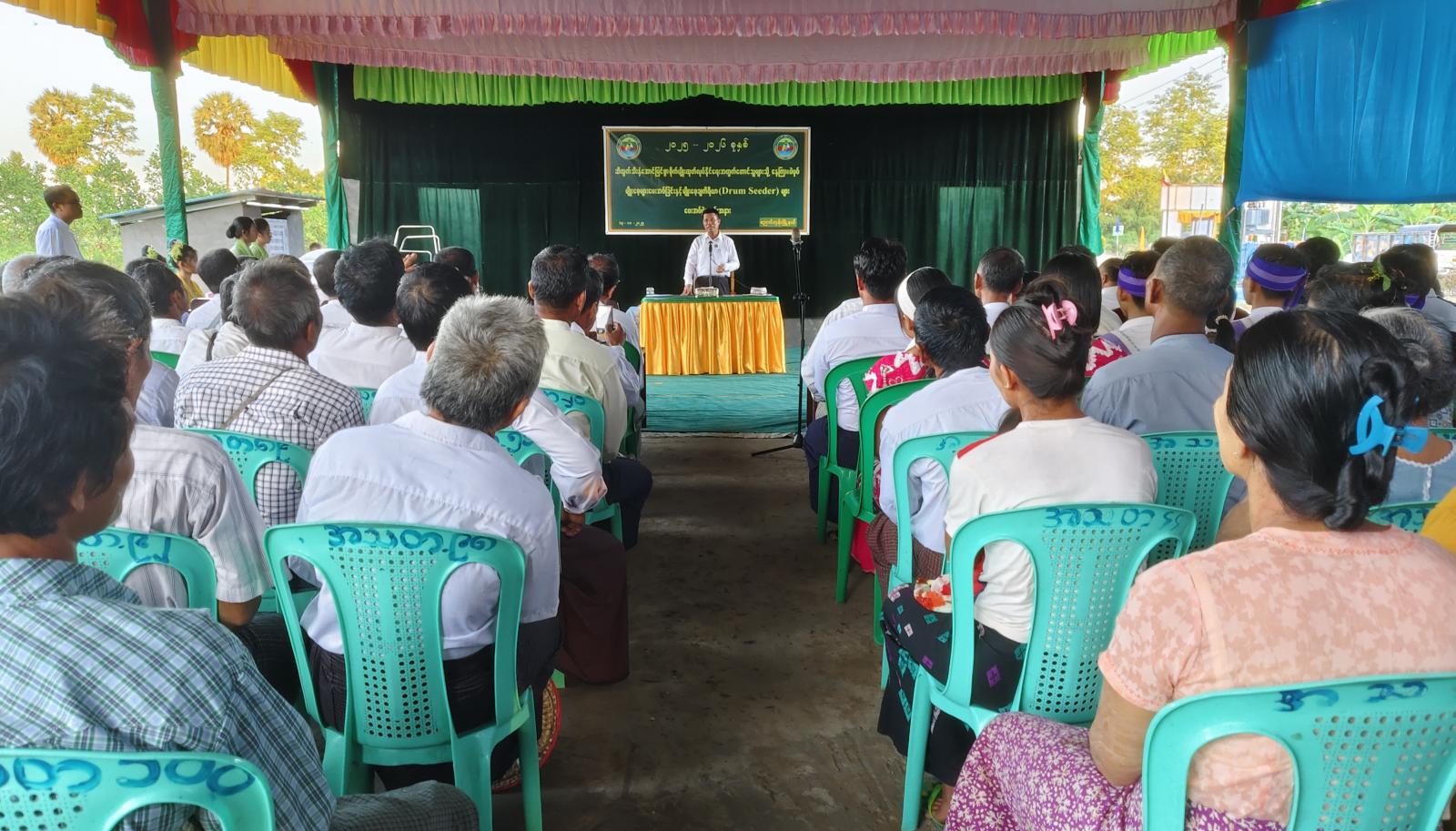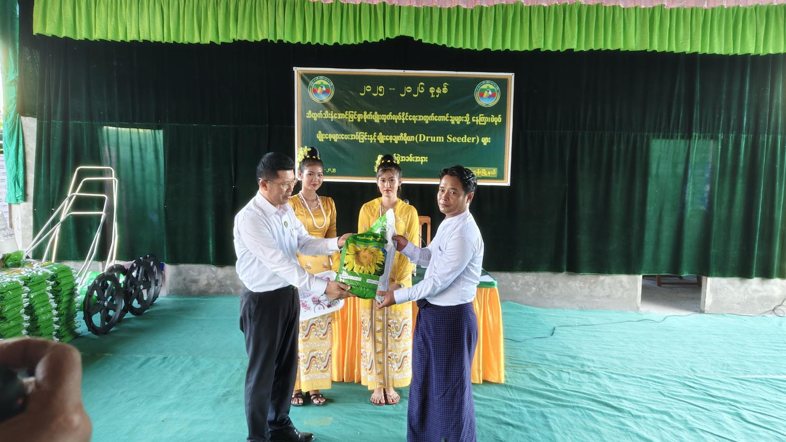 ထို့နောက် တိုင်းဒေသကြီးဝန်ကြီးချုပ်နှင့်အဖွဲ့သည် အုန်းပင်စုကျေးရွာတွင်ပြုလုပ်သည့် ၂၀၂၅-၂၀၂၆ ခုနှစ်၊ ဆီထွက်သီးနှံအောင်မြင်စွာ စိုက်ပျိုးထုတ်လုပ်နိုင်ရေးအတွက် တောင်သူများသို့ နေကြာ၊ ပဲပုပ်မျိုးစေ့များပေးအပ်ခြင်းနှင့် စပါးမျိုးစေ့ချကိရိယာ (Drum Seeder) ပေးအပ်ပွဲအခမ်းအနားသို့ တက်ရောက်၍ တောင်သူများအား နေကြာ၊ ပဲပုပ်မျိုးစေ့များနှင့် စပါးမျိုးစေ့ချကိရိယာ (Drum Seeder) ပေးအပ်ခဲ့ပြီးနောက် တောင်သူများနှင့်တွေ့ဆုံ၍ တိုင်းဒေသကြီးအတွင်း ဆီဖူလုံမှုရှိစေရေးအတွက် နေကြာတိုးချဲ့စိုက်ပျိုးခြင်းအပြင် ပဲပုပ်၊ ပဲကြီးရောနှောစိုက်ပျိုးခြင်းကိုလည်း ရည်မှန်းချက်ပေးဆောင်ရွက်ကြရန်နှင့် ကျေးရွာဖွံ့ဖြိုးတိုးတက်ရေးလုပ်ငန်းများအပြင် သီးနှံများပန်းတိုင်အထွက်နှုန်းရောက်ရှိရေး၊ ဆီဖူလုံမှုရှိစေရေးအတွက် ဆီထွက်သီးနှံများကိုဖြစ်ထွန်းအောင်မြင်အောင်စိုက်ပျိုးကြရန်မှာကြားခဲ့ပြီး တောင်သူတစ်ဦးက ကျေးဇူးတင်စကားများပြောကြားခဲ့ကြောင်းသိရသည်။