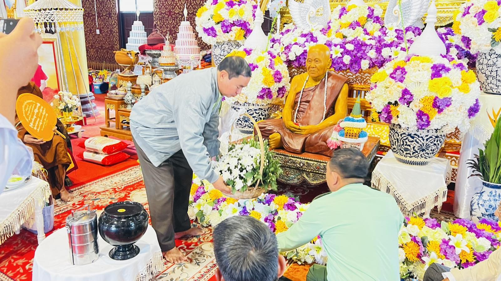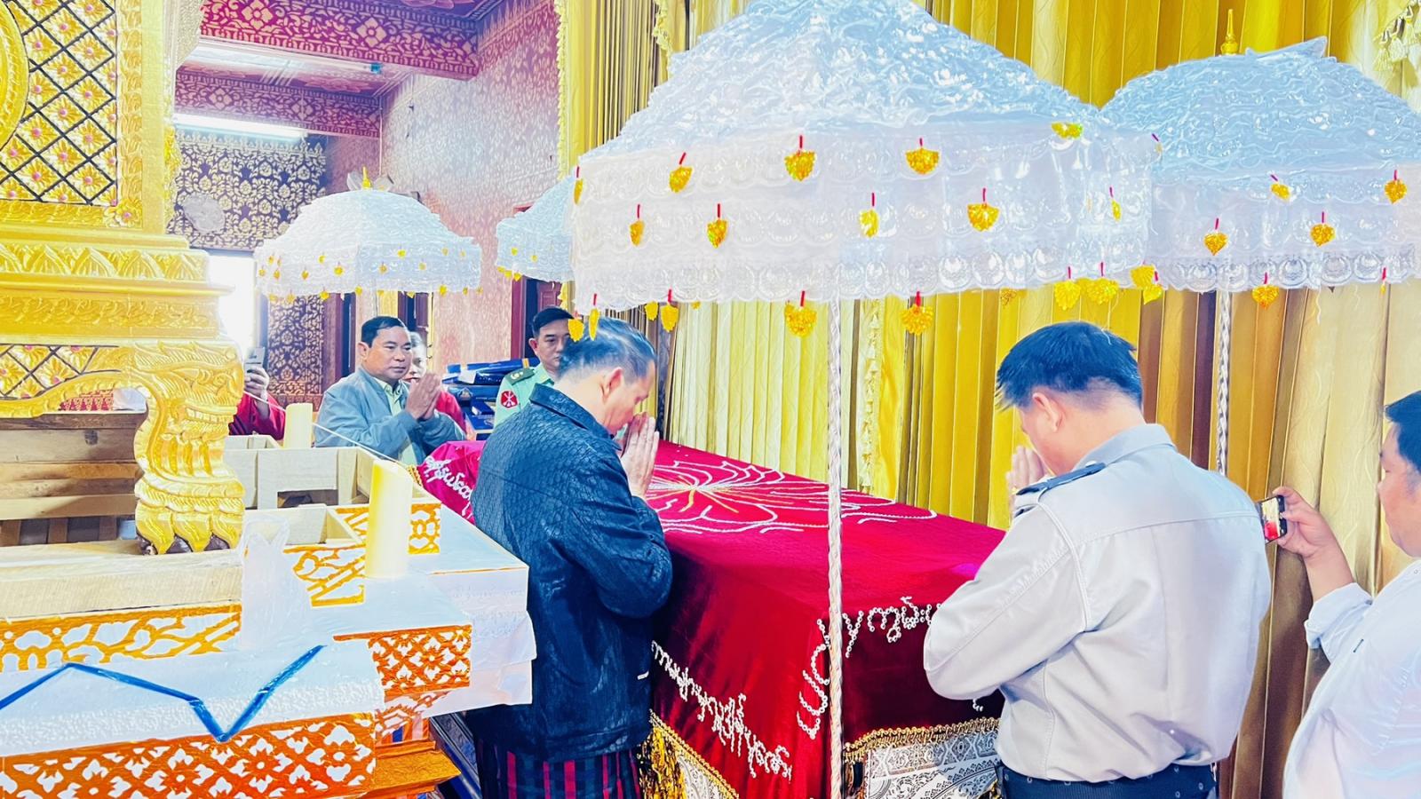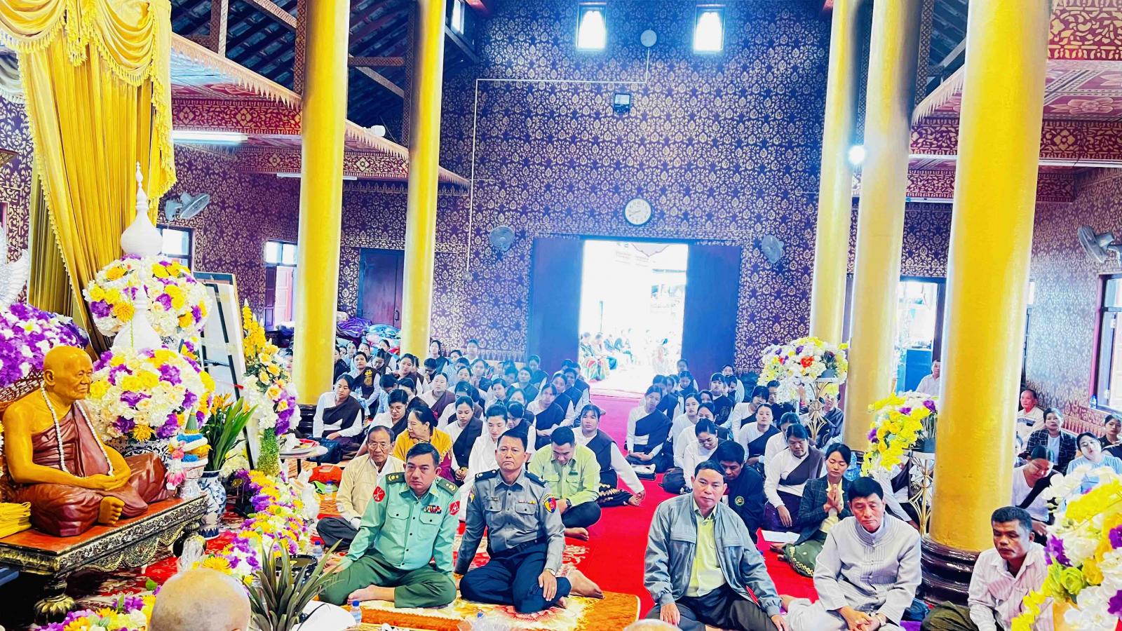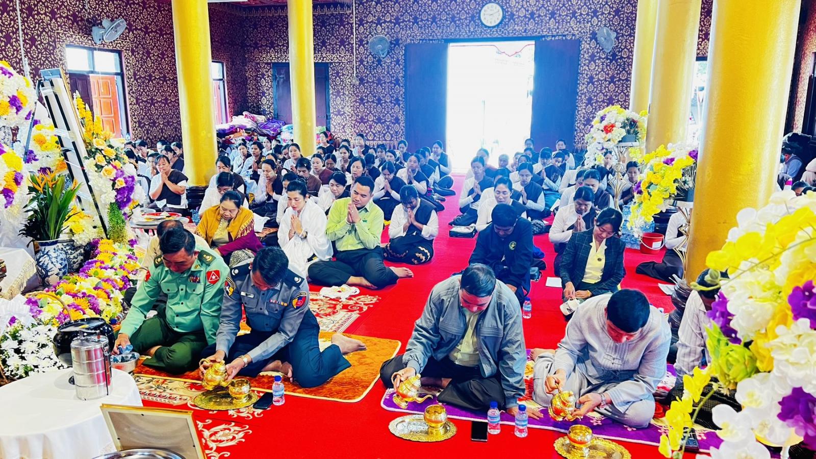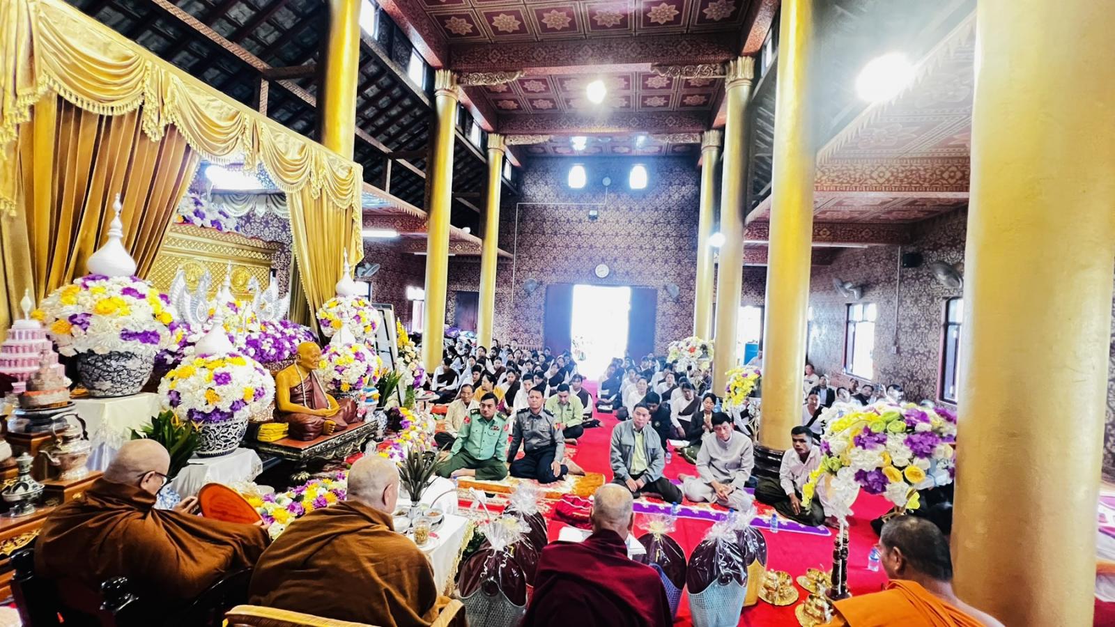ထို့နောက် ဟိုခုံပရိယတ္တိစာသင်တိုက်ဆရာတော်နှင့် သံဃာတော်များက မေတ္တာသုတ် ပရိတ်တရားတော်များ နာယူပြီး ခရိုင်စီမံခန့်ခွဲရေးနှင့်အုပ်ချုပ်ရေးကော်မတီဥက္ကဋ္ဌ ဦးဆောင်၍ လှူဖွယ်ပစ္စည်းများ ဆက်ကပ်လှူဒါန်းကာ မိုင်းဟန်ကျောင်းဆရာတော်ထံမှ ရေစက်ချတရား နာကြားပြီး ဗုဒ္ဓသာသနံစိရံတိဌတု သုံးကြိမ်ရွတ်ဆိုဆုတောင်း၍ အခမ်းအနားကို အောင်မြင်စွာ ရုတ်သိမ်းခဲ့ကြောင်း သိရသည်။