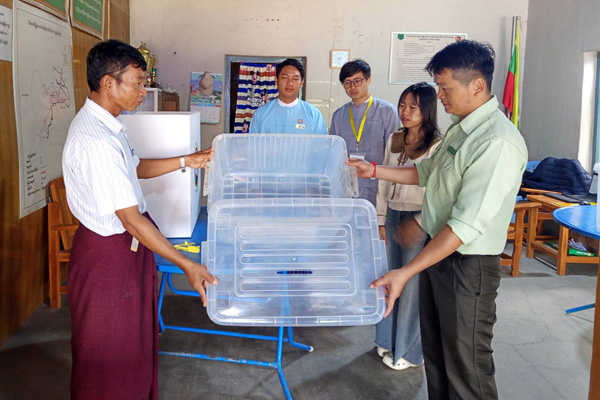 ထိုသို့သွားရောက်ကြည့်ရှုအားပေးရာတွင် ခရိုင်စီမံခန့်ခွဲရေးနှင့်အုပ်ချုပ်ရေးကော်မတီဉက္ကဋ္ဌ ဦးညီညီထွေး၊ ခရိုင်ရွေးကောက်ပွဲကော်မရှင်အဖွဲ့ခွဲဉက္ကဋ္ဌ ဦးစိုင်းလျှန်းဝမ်းနှင့် အဖွဲ့ခွဲဝင်များ၊ မြို့နယ်စီမံခန့်ခွဲရေးနှင့်အုပ်ချုပ်ရေးကော်မတီဉက္ကဋ္ဌ ဦးအားလွန်၊ မြို့နယ်ရွေးကောက်ပွဲကော်မရှင်အဖွဲ့ခွဲဉက္ကဋ္ဌ ဦးထွန်းလွင်ဦးနှင့် အဖွဲ့ခွဲဝင်များ၊ နိုင်ငံရေးပါတီဝင်များနှင့် တာဝန်ရှိသူတို့က သက်ဆိုင်ရာရပ်ကွက်နှင့် ကျေးရွာအုပ်စုကော်မရှင်အဖွဲ့ခွဲရုံးများတွင် တက္ကသိုလ်၊ ဒီဂရီကောလိပ်၊ ကောလိပ် ကျောင်းသား၊ ကျောင်းသူများ မဲပုံးများဖြင့် ကြိုတင်ဆန္ဒမဲလက်မှတ်ပေးနိုင်ရေးနှင့် ဆန္ဒမဲလက်မှတ် ကောက်ယူနိုင်ရေး ဆောင်ရွက်နေမှုအား သွားရောက်ကြည့်ရှုအားပေးပြီး လိုအပ်သည်များ ပေါင်းစပ် ဆောင်ရွက်ပေးခဲ့ကြောင်း သိရသည်။