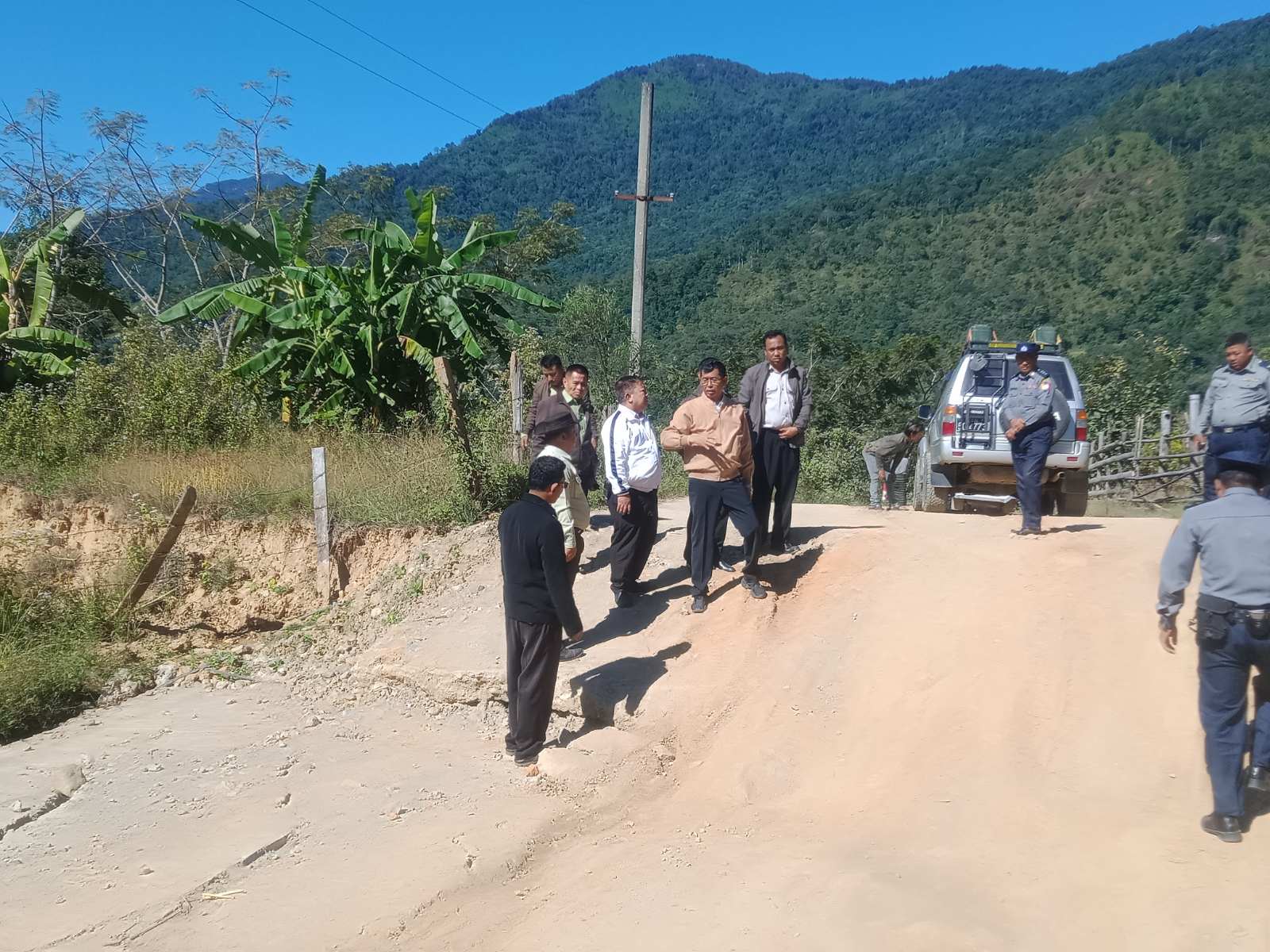 ထို့နောက် လေရှီး-ဆွမ္မရာလမ်းပိုင်း မိုင်တိုင်(၄၀/၃၄)တွင် ကားလမ်း(၈၀)ပေခန့် တောင်ပြိုမြေကျနေမှုနှင့် မိုင်တိုင်(၄၁/၃၄)တွင် ကားလမ်း(၁၆၀)ပေခန့် လမ်းသားပျက်ရွေ့/နိမ့်ကျနေမှုများအား သွားရောက်ကြည့်ရှုစစ်ဆေးခဲ့ပြီး ပျက်စီးနေသည့်လမ်းပိုင်းများ လျင်မြန်စွာပြုပြင်နိုင်ရေးအတွက် လိုအပ်သည့်ရန်ပုံငွေ တင်ပြတောင်းခံ ဆောင်ရွက်စေရေးအတွက် မြို့နယ်အင်ဂျင်နီယာအား မှာကြားခဲ့သည်။