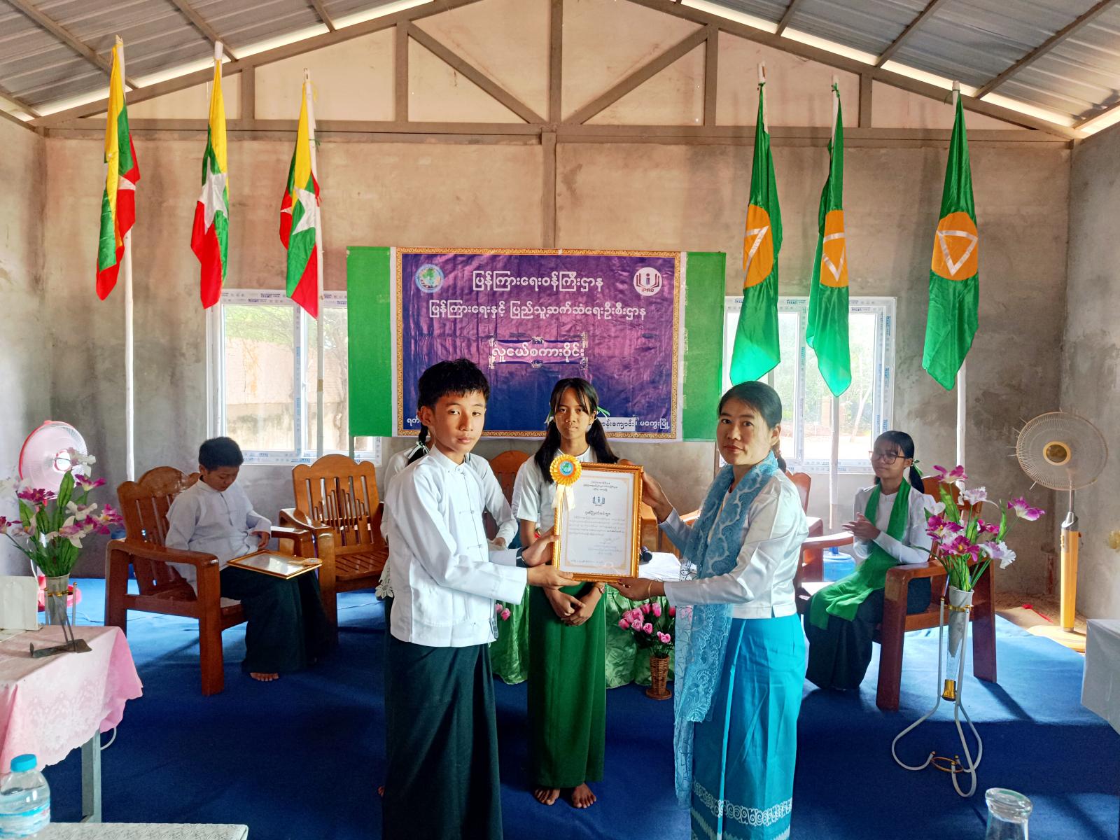 ဆက်လက်၍ ပြန်ကြားရေးနှင့်ပြည်သူ့ဆက်ဆံရေးဦးစီးဌာန မကွေးခရိုင် လက်ထောက်ညွှန်ကြားရေးမှူးနှင့် လေ့ကျင့်ရေးအလယ်တန်းကျောင်းအုပ်ဆရာမကြီးက လူငယ်စကားဝိုင်းတွင် ပါဝင်ဆွေးနွေးခဲ့သော ကျောင်းသား၊ ကျောင်းသူများအား ဂုဏ်ပြုမှတ်တမ်းများ ပေးအပ်၍ လေ့ကျင့်ရေး အ-လ-ကကျောင်းအုပ်ဆရာမကြီး ဒေါ်ခိုင်ဇင်သက်ကကျေးဇူးတင်စကားပြန်လည်ပြောကြားပြီး တက်ရောက်လာကြသည့် ကျောင်းသား၊ ကျောင်းသူများက ခင်းကျင်းပြသထားသော အသိပညာပေး နံရံကပ်စာစောင်များ နှင့် သုတ၊ရသ၊ စာအုပ်၊စာစောင်များအား စိတ်ပါဝင်စားစွာ လေ့လာကြည့်ရှုခဲ့ကြသည်။