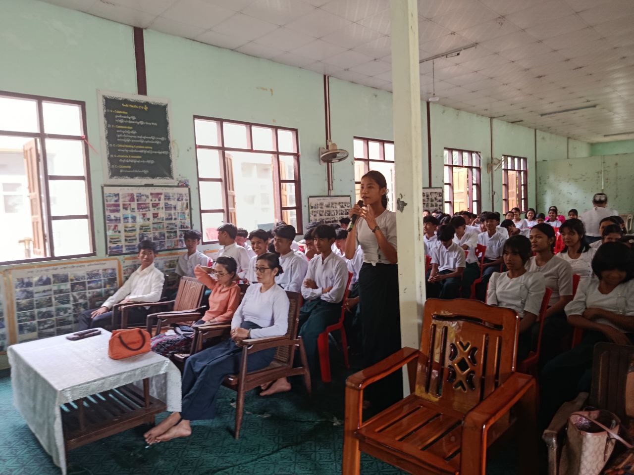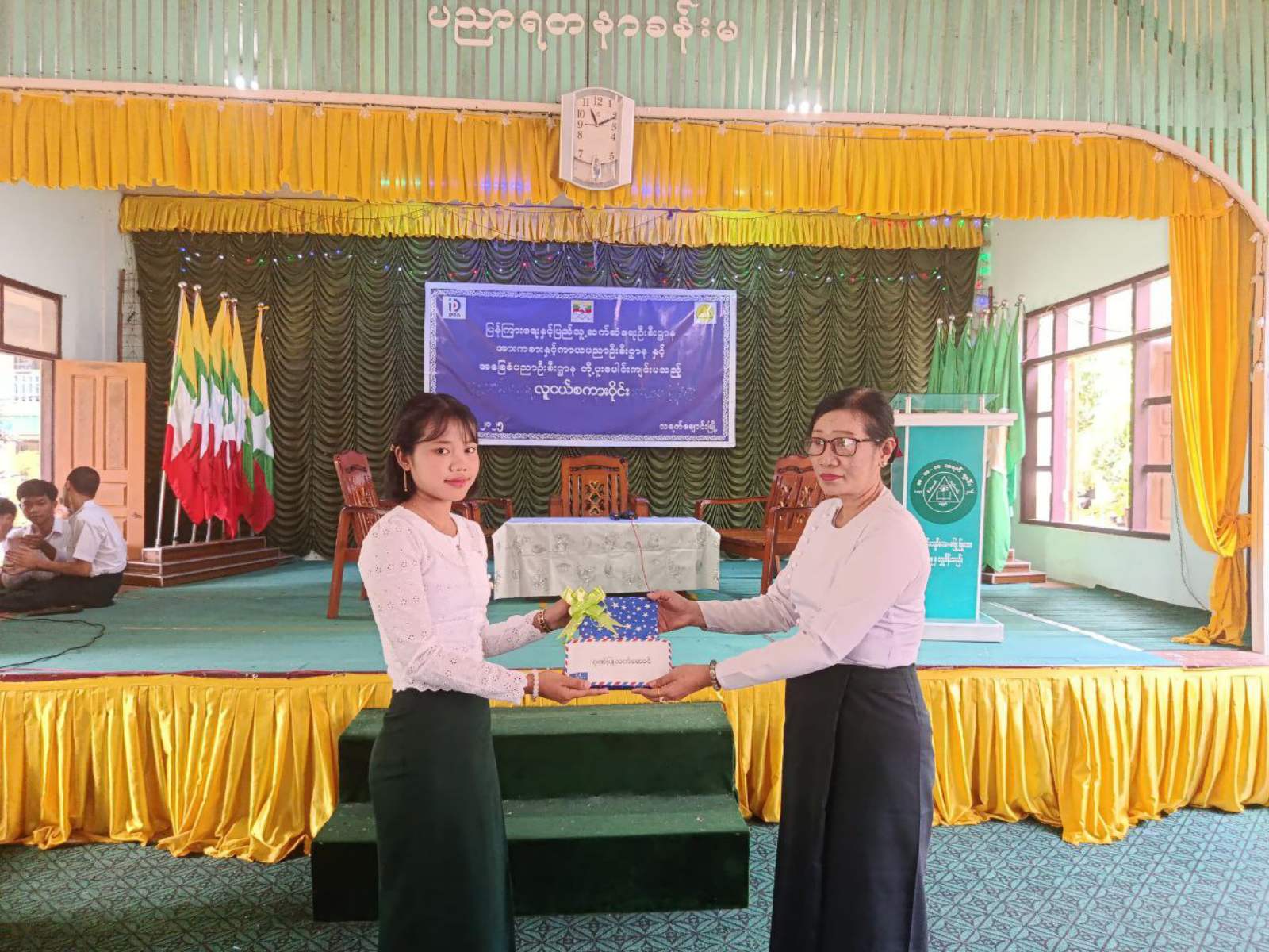 ဆက်လက်၍ တက်ရောက်လာသော ကျောင်းသား၊ ကျောင်းသူများနှင့် အပြန်အလှန်မေးမြန်းဆွေးနွေးကြပြီး တာဝန်ရှိသူများက ဆွေးနွေးပြောကြားသော ကျောင်းသား၊ ကျောင်းသူများအား ဂုဏ်ပြုလက်ဆောင်ပစ္စည်းများပေးအပ်ကာ ကျောင်းအုပ်ဆရာမကြီးက ကျေးဇူးတင်စကားပြောကြားခဲ့ကြောင်း သတင်းရရှိသည်။