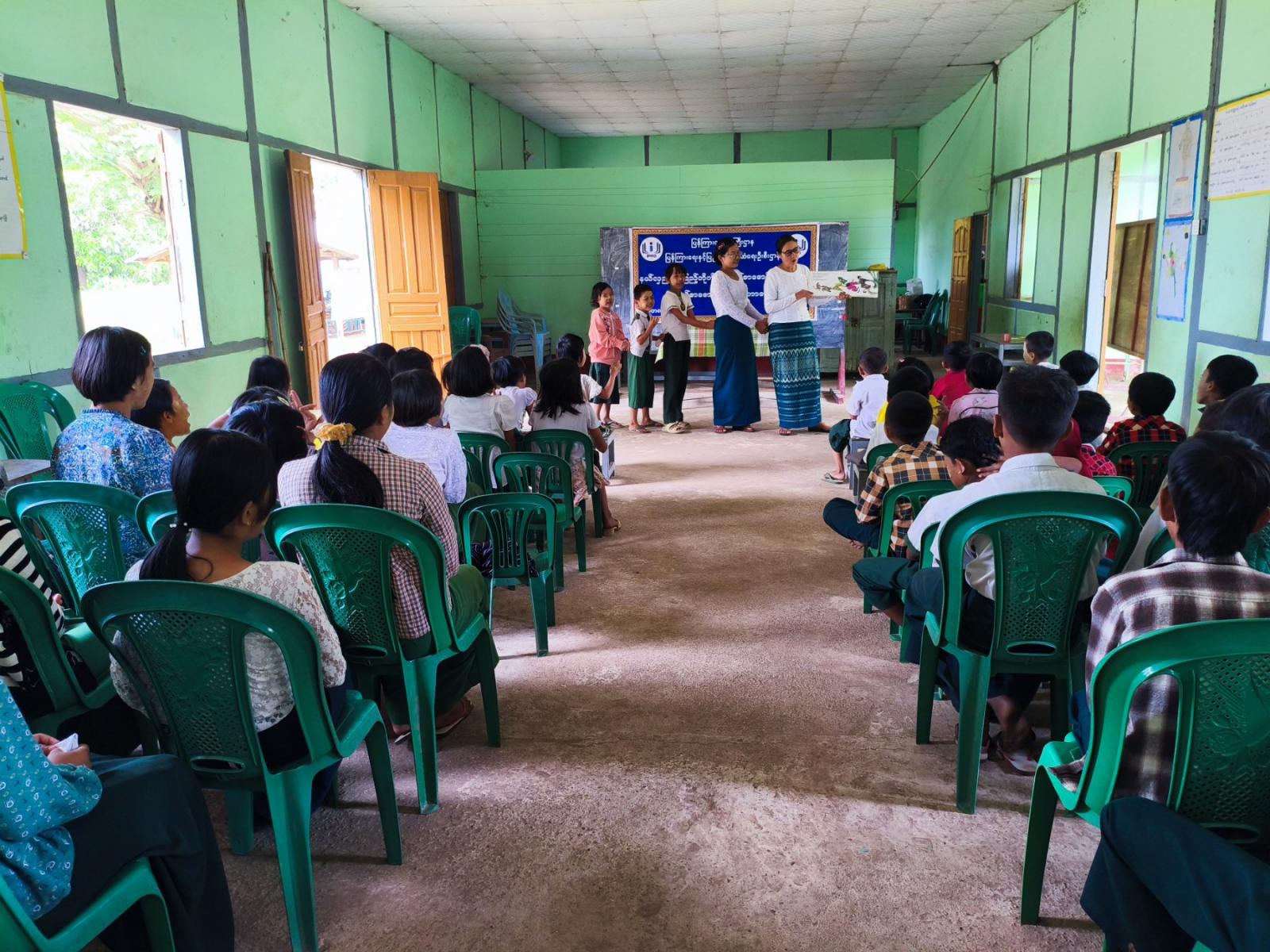ထို့နောက် ကျောင်းသား၊ ကျောင်းသူများအား ပြန်ကြားရေးနှင့်ပြည်သူ့ဆက်ဆံရေးဦးစီးဌာန ဝန်ထမ်းများမှ ရုပ်ပုံပါစာအုပ်ဖြင့် ပုံပြင်ပြောခြင်း၊ အသိပညာဗဟုသုတရရှိစေမည့် စာအုပ်စာစောင်များ ပြသခြင်း၊ ဖတ်ရှုစေခြင်းများ ဆောင်ရွက်ခဲ့ပြီး ကလေးအလုပ်သမားပပျောက်ရေး အသိပညာပေးနံရံကပ်စာစောင်၊ လူကုန်ကူးမှုတားဆီးကာကွယ်ရေး အသိပညာပေးနံရံကပ်စာစောင်များ ပြသခြင်းတို့ ဆောင်ရွက်ခဲ့ရာ ကျောင်းသား၊ ကျောင်းသူများမှ စိတ်ပါဝင်စားစွာ လေ့လာကြည့်ရှုမှတ်သားခဲ့ကြောင်း သိရသည်။