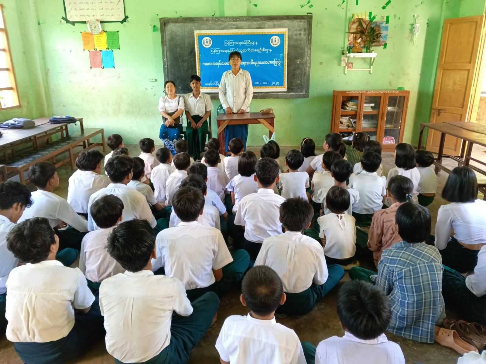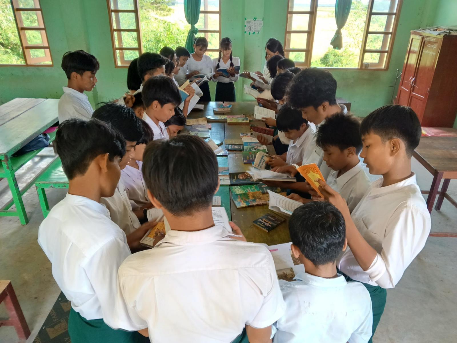 ထို့နောက် ပြန်ကြားရေးနှင့်ပြည်သူ့ဆက်ဆံရေးဦးစီးဌာနမှ စာဖတ်ရှိန်မြှင့်တင်ရေး နယ်လှည့်စာကြည့်တိုက်အဖြစ် ဒု-ဦးစီးမှူး ဒေါ်မိမိခိုင်နှင့် ဝန်ထမ်းများက ကျောင်းသား/ ကျောင်းသူများအား အသိပညာတိုးပွားစေမည့် ရုပ်ပုံပြဇာတ်နှင့်ရုပ်ပုံပါ ပုံပြင်စာအုပ်များဖြင့် ပုံပြင်ပြောပြခြင်း၊ စာအုပ်များအားဖတ်ရှုစေခြင်းနှင့် မူးယစ်ဆေးဝါးအသိပညာပေး နံရံကပ်စာစောင်များကို ပြသခဲ့ရာ ကျောင်းသား/ ကျောင်းသူများက စိတ်ပါ၀င်စားစွာ ကြည့်ရှုလေ့လာကြကြောင်း သိရသည်။