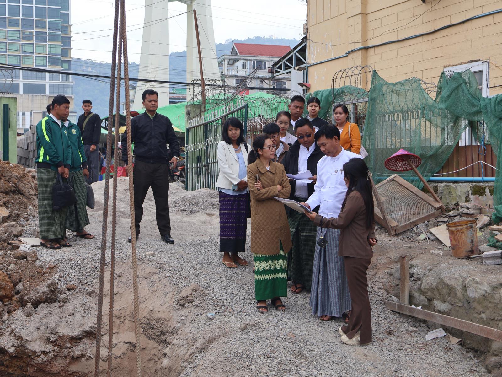 ဆက်လက်၍ ပြည်နယ်ဝန်ကြီးနှင့်အဖွဲ့သည် တောင်ကြီးမြို့နယ် အခြေခံပညာအလယ်တန်းကျောင်း ဘုရားဖြူ(မြောက်)၌ (၁၄၀x၃၀)ပေ RCC သုံးထပ်စာသင်ဆောင် တည်ဆောက်နေမှုနှင့် ဖက်ကွန်ကျေးရွာရှိ အခြေခံပညာအထက်တန်းကျောင်း(ခွဲ) ဖက်ကွန်၌ (၁၅၀x၃၀)ပေ တစ်ထပ် စာသင်ဆောင် တည်ဆောက်နေမှုအခြေအနေကို သွားရောက်ကြည့်ရှုစစ်ဆေးရာတာဝန်ရှိသူတို့က ရှင်းလင်းတင်ပြပြီး ပြည်နယ်ဝန်ကြီးက သတ်မှတ်စံချိန်စံညွှန်းနှင့်အညီ အရည်အသွေးပြည့်မီစွာ တည်ဆောက်ရေး၊ သတ်မှတ်ကာလအတွင်း အချိန်မီပြီးစီးရေး၊ လုပ်ငန်းခွင်ဘေးအန္တရာယ်ကင်းရှင်းရေး၊ ကုမ္ပဏီမှ တာဝန်ရှိသည့် အင်ဂျင်နီယာက အမြဲလာရောက်၍ စနစ်တကျ ကြပ်မတ်ဆောင်ရွက်ရန်မှာကြားပြီး လိုအပ်သည်များ ပေါင်းစပ်ညှိနှိုင်းဖြည့်ဆည်းဆောင်ရွက်ပေးကြောင်း သိရသည်။