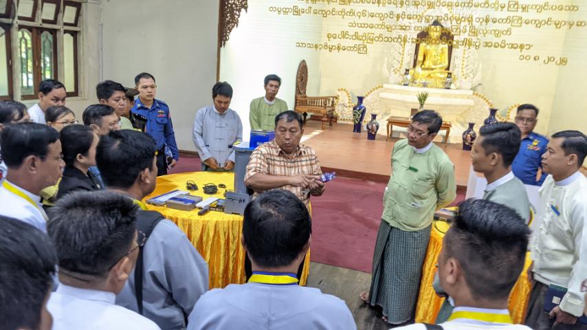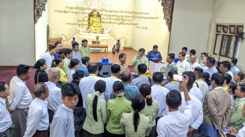 ယင်းနောက် ပြည်ထောင်စုရွေးကောက်ပွဲကော်မရှင်အဖွဲ့ဝင် ဦးတင်ဆွေဝင်းမှ ရွေးကောက်ပွဲအတွက် မဲပေးစက်နှင့်ပတ်သက်သည့် ကိစ္စရပ်များအား မဲပေးစက်ဖြင့်လက်တွေ့ရှင်းလင်းဆွေးနွေးခြင်း၊ ပြည်ထောင်စုလွှတ်တော်အသီးသီးအလိုက် မြန်မာအီလက်ထရောနစ်စက်များ သိမ်းဆည်းမည့် သာသနာ့ဗိမာန်အတွင်း ကြည့်ရှုစစ်ဆေးခြင်းများ၊ မဲဆန္ဒရှင်စာရင်းပြုစုခြင်းဆိုင်ရာကိစ္စရပ်များအား ဆွေးနွေးခြင်း၊ မဲစာရင်း မှန်ကန်မှုရှိစေရေး ဝိုင်းဝန်းဆောင်ရွက်ကြရန် ပြောကြားခြင်း၊ ခရိုင်နှင့် မြို့နယ် ရွေးကောက်ပွဲကော်မရှင်အဖွဲ့ခွဲ တာဝန်ရှိသူများနှင့် ပူးပေါင်းဆောင်ရွက်နိုင်ရေးကိစ္စရပ်များ ရှင်းလင်းဆွေးနွေးမှာကြားခဲ့ပြီး ခရိုင်နှင့် မြို့နယ်ရွေးကောက်ပွဲကော်မရှင်အဖွဲ့ခွဲ တာဝန်ရှိသူများက ပါတီစုံဒီမိုကရေစီအထွေထွေရွေးကောက်ပွဲအတွက် ပြင်ဆင်ဆောင်ရွက်လျက်ရှိသည့် လုပ်ငန်းစဉ်များကို ဆွေးနွေးတင်ပြလျက်ရှိရာ ပြည်ထောင်စုရွေးကောက်ပွဲ ကော်မရှင်အဖွဲ့ဝင် ဦးတင်ဆွေဝင်းက လိုအပ်သည်များအား လမ်းညွှန်မှာကြားခဲ့ကြောင်း သိရသည်။