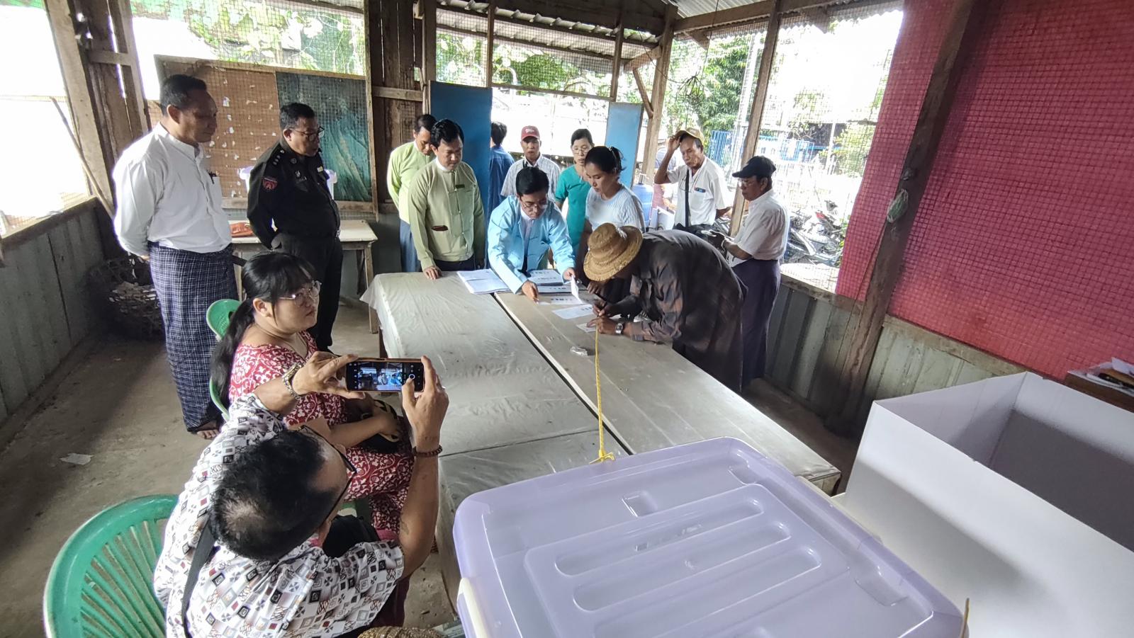 ကျောင်းသား၊ ကျောင်းသူများက နိုင်ငံရေးပါတီ ကိုယ်စားလှယ်များရှေ့တွင် လွတ်လပ်စွာ ကြိုတင်မဲပေးခြင်းကို ရပ်ကျေးကော်မရှင်များနှင့်အတူ မြို့နယ်စီမံခန့်ခွဲရေးနှင့်အုပ်ချုပ်ရေးကော်မတီဥက္ကဋ္ဌ ဦးအောင်ကျော်ဇေယျနှင့် မြို့နယ်ရွေးကောက်ပွဲကော်မရှင်အဖွဲ့ခွဲဥက္ကဋ္ဌနှင့် အဖွဲ့ဝင်များက ကြီးကြပ်စီမံဆောင်ရွက်ပေးလျက်ရှိကြောင်း သိရသည်။