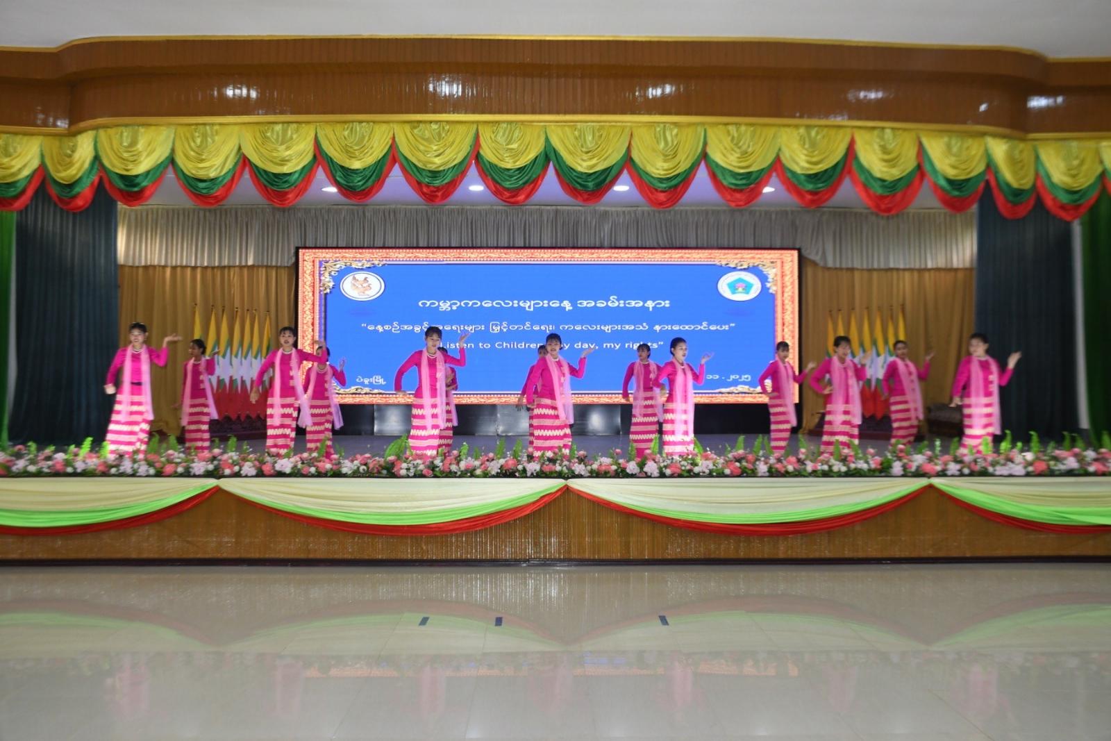 ယင်းနောက် ၂၀၂၅ ခုနှစ်၊ ကမ္ဘာ့ကလေးများနေ့အထိမ်းအမှတ် Video Clip အား ကြည့်ရှုခဲ့ကြသည်။ ၎င်းနောက် အမှတ် (၂) အခြေခံပညာအထက်တန်းကျောင်းမှ ကျောင်းသူများက “ပြည်ထောင်စုသွေး” သီချင်းဖြင့် အသီးသီး ကပြဖျော်ဖြေတင်ဆက်ခဲ့ကြရာ တိုင်းဒေသကြီးဝန်ကြီးချုပ်နှင့်ဇနီးတို့သည် ကပြဖျော်ဖြေတင်ဆက်ခဲ့ကြသူများအား ဂုဏ်ပြုငွေများ ချီးမြှင့်ပေးခဲ့ပြီး အခမ်းအနား တက်ရောက်လာသကြသူများအား ရင်းရင်းနှီးနှီး လိုက်လံနှုတ်ဆက်ခဲ့ကြောင်း သိရသည်။