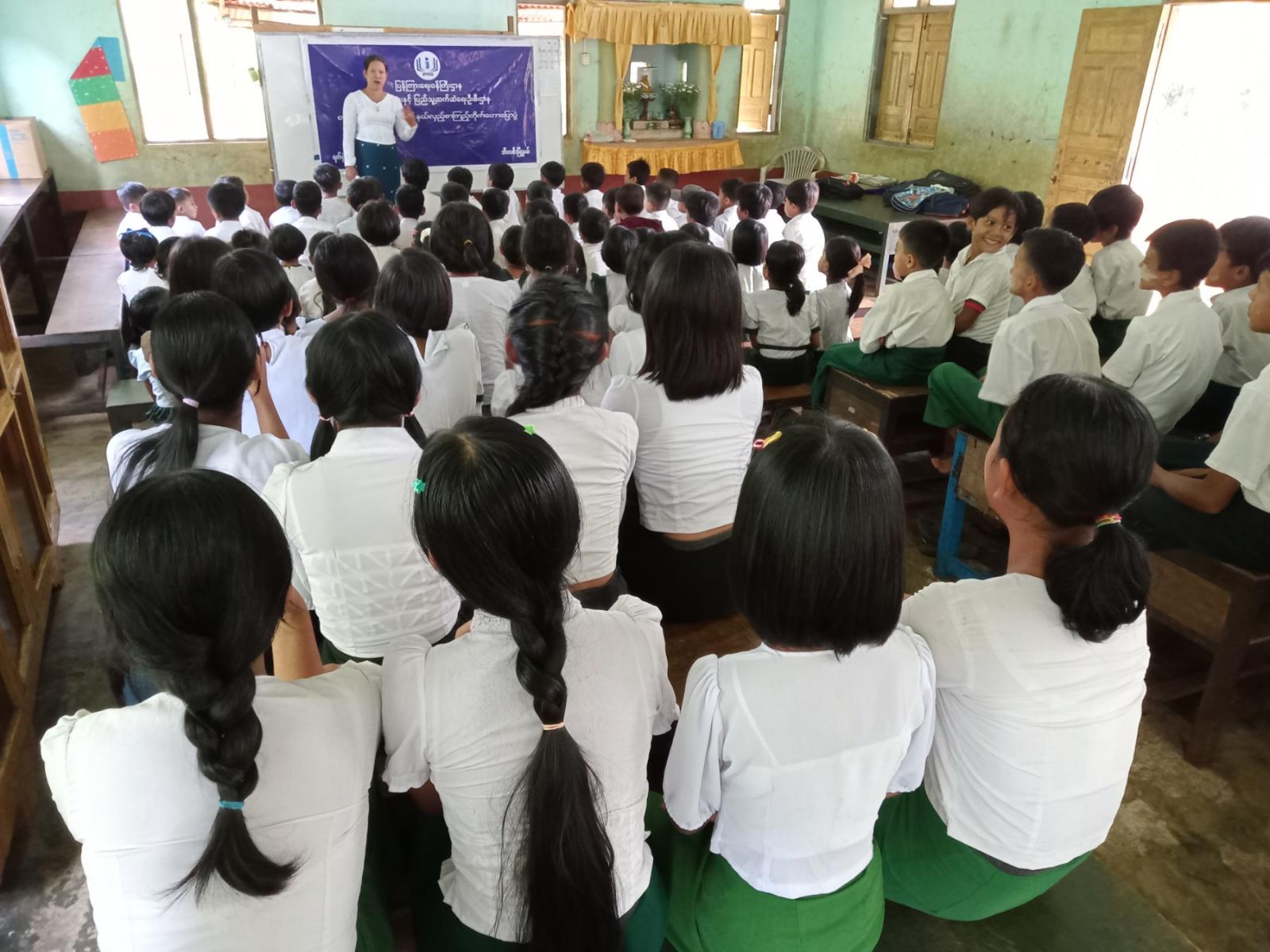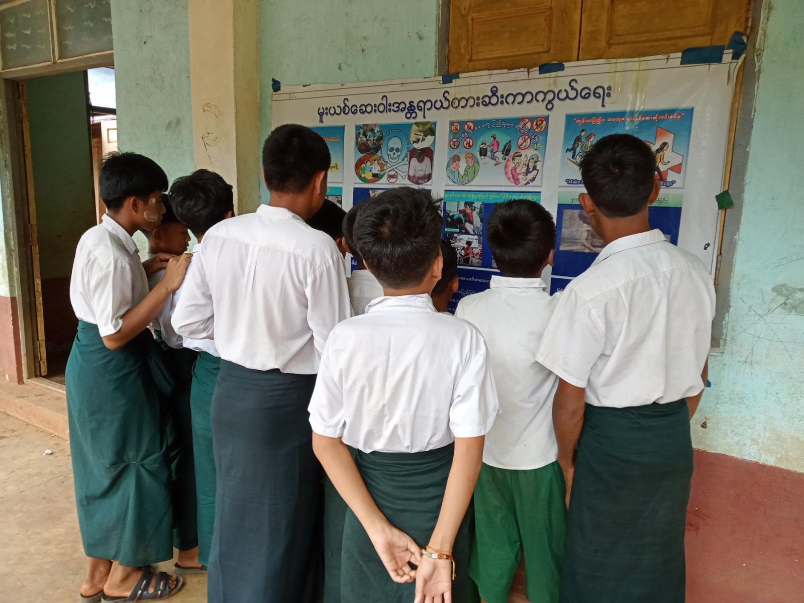 အဆိုပါ အသိပညာပေးလုပ်ငန်းတွင် မူးယစ်ဆေးဝါးအန္တရာယ်တားဆီးကာကွယ်ရေး၊ ကလေးအလုပ်သမားပပျောက်ရေး စသည့် အသိပညာပေးနံရံကပ်စာစောင်များကို ခင်းကျင်းပြသခဲ့ရာ ကျောင်းသား၊ ကျောင်းသူများက စိတ်ပါ၀င်စားစွာ ကြည့်ရှုလေ့လာခဲ့ကြောင်း သိရသည်။